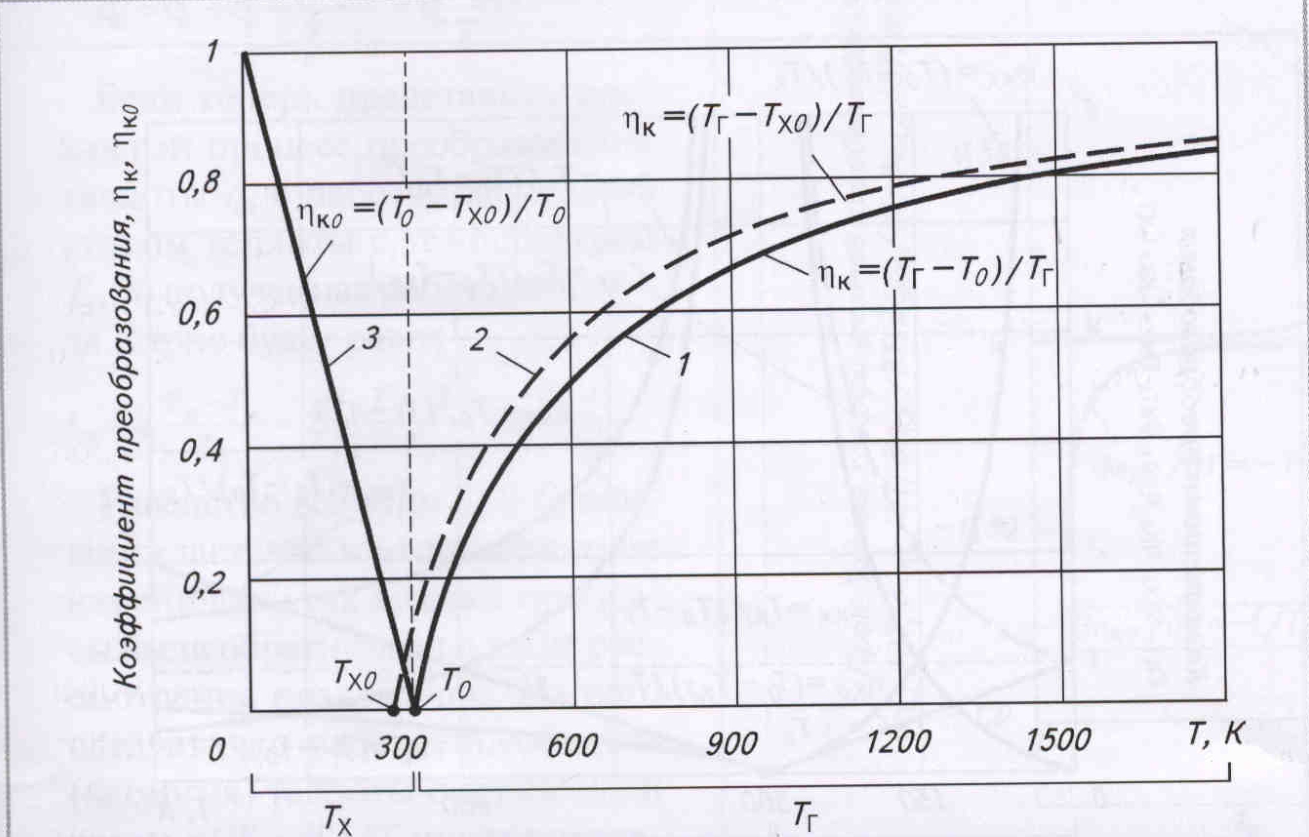 При наличии теплового резервуара (стока теплоты) с температурой, более низкой, чем То, теплота окружающей среды будет обладать потенциальной работоспособностью, максимальная величина которой пропорциональна коэффициенту преобразования Карно n0 (линия 3 на рис. 1):