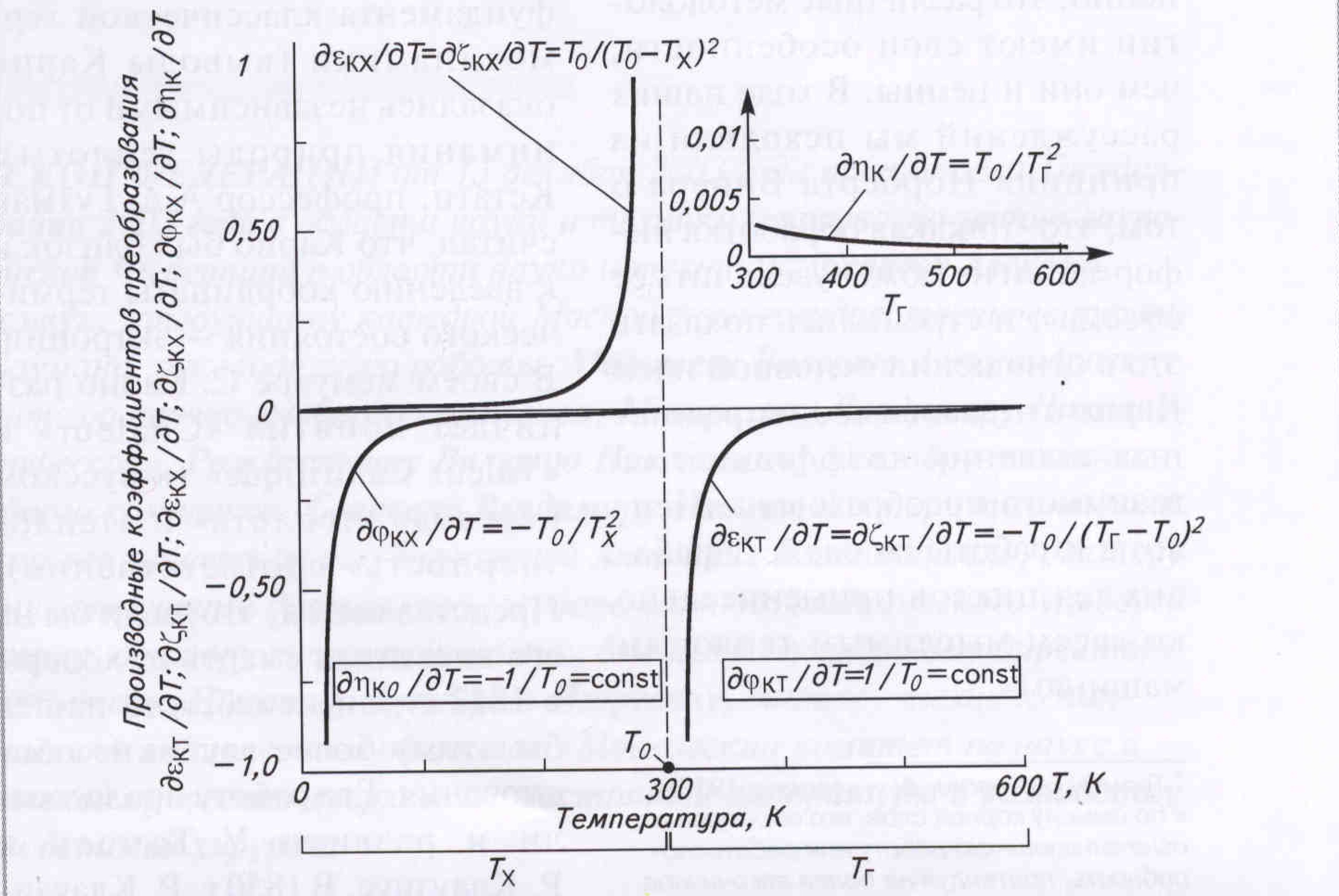 Рис. 3. Производные коэффициентов преобразования как функции температуры