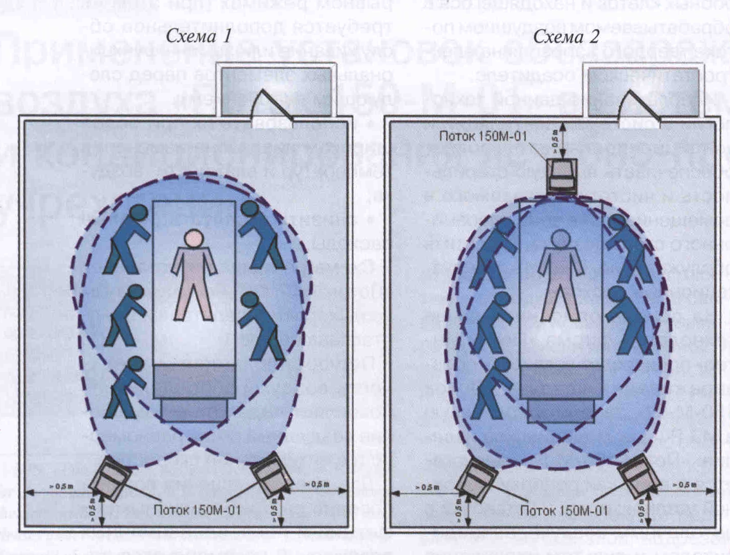 Схема размещения установок «Поток 150-М-01» с потолочным воздухораспределителем представлена на рис 1.