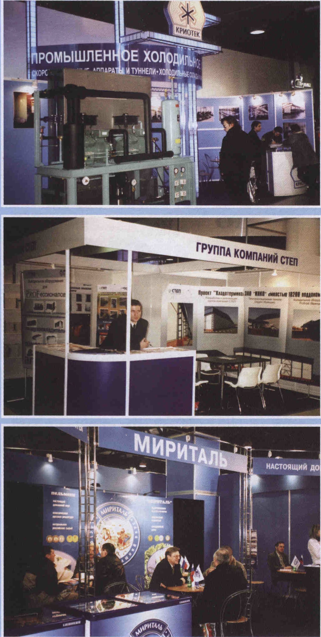 Широкий ассортимент быстрозамороженных продуктов котлеты, пельмени, пирожки, блинчики, пиццу, вареники, полуфабрикаты из рыбы и морепродуктов, ягоды, грибы, овощи и овощные смеси представляли: группа компаний «Ледово», Бусиновский мясоперерабатывающий комбинат, торговопроизводственная компания «Визитон», «Компания Нева», фирмы «Два капитана», экспериментальный кон дитерско-бул очный комбинат «Звездный» (Москва), «Талосто», «Равиоли» и «Морозко» (СанктПетербург), «Мириталь-Производитель» (Реутов, Московская обл.) и др.