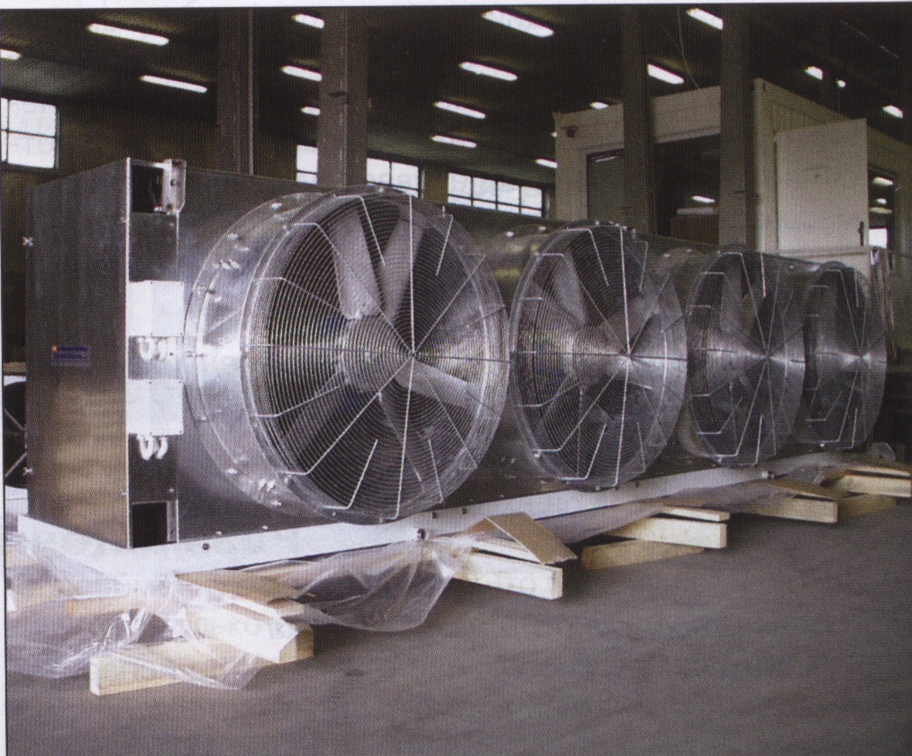 Существует значительная вероятность образования ледяного нароста вблизи вентилятора и на его лопастях из-за наличия влаги в воздухе, выходящем из охладителя. В случае недостаточного оттаивания не исключена блокировка лопастей, которую можно предупредить организацией автономного оттаивания диффузоров вентиляторов или применением текстильных воздуховодов для оттайки.