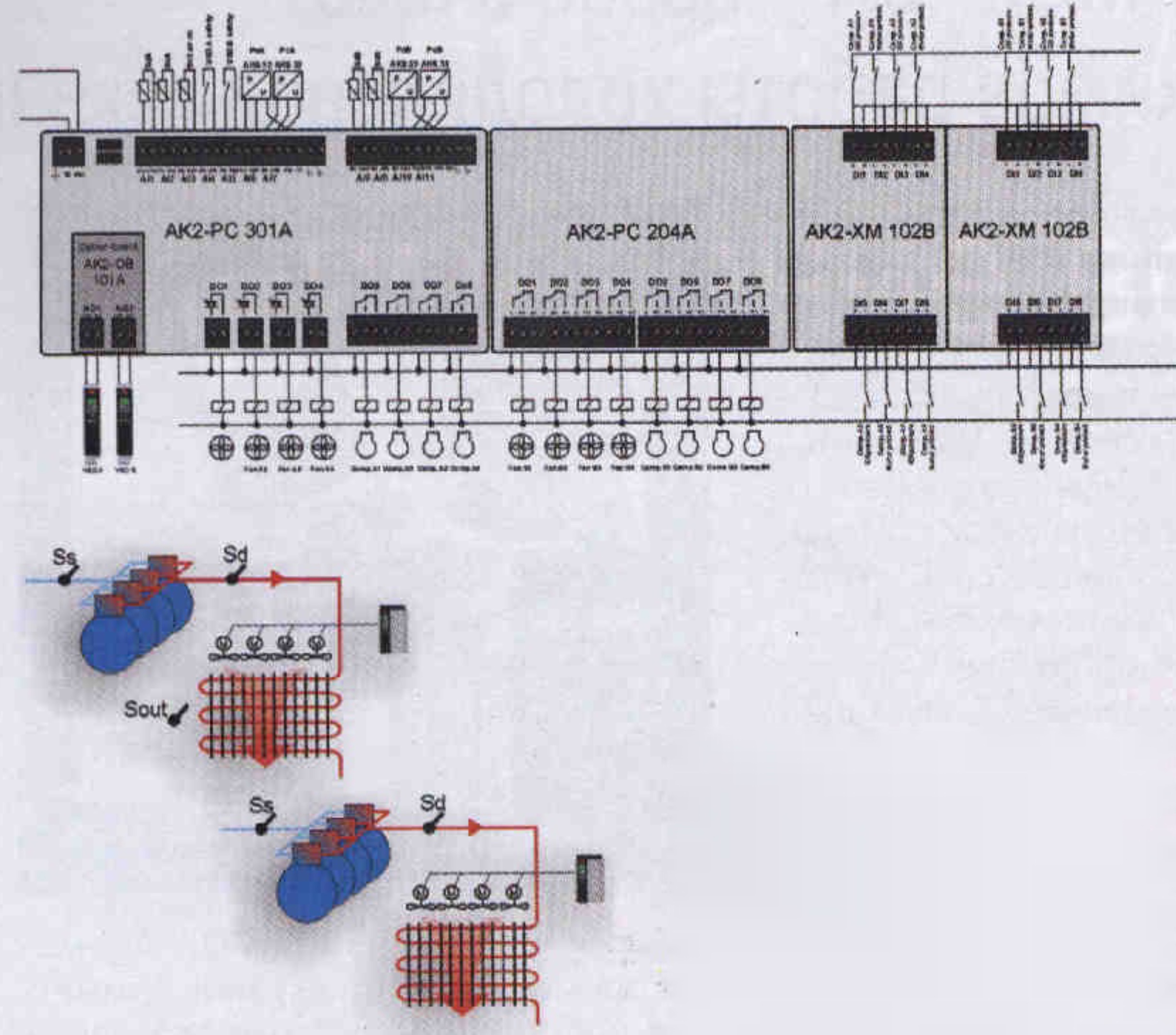 Управление компрессорами и вентиляторами конденсатора может осуществляться как по давлению, так и по температуре. К отличительным особенностям контроллера можно отнести: • возможность управления компрессорами с различной производительностью, разными комбинациями компрессоров с изменяемой производительностью;