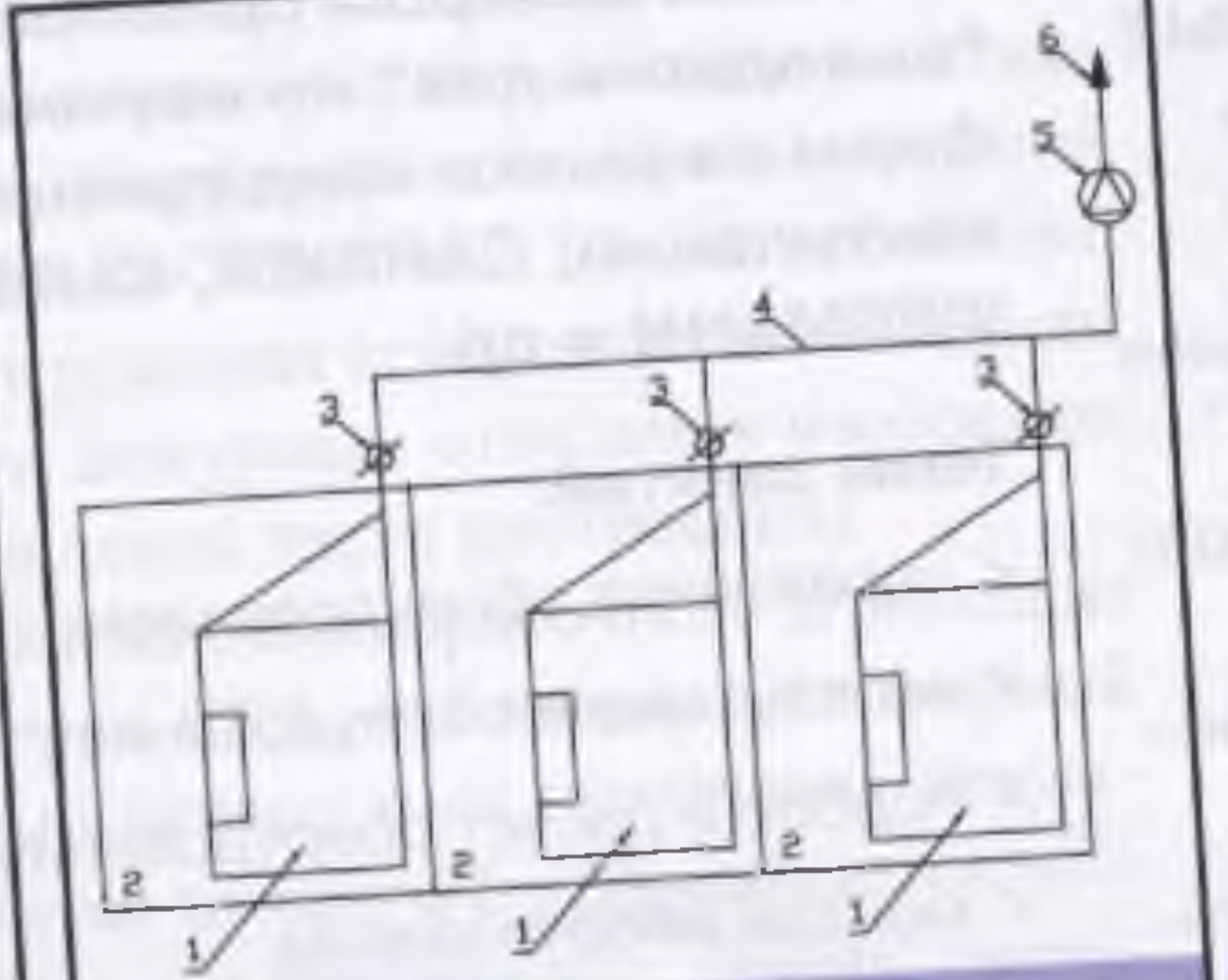 3. Рис. 17 5. Централизованная система вытяжной вентиляции: 1. Вытяжной шкаф. 2. Лаборато­рия. 3. Огнезадерживающий клапан. 4. Сборный коллектор 5. Вентилятор. 6. Вытяжная шахта.