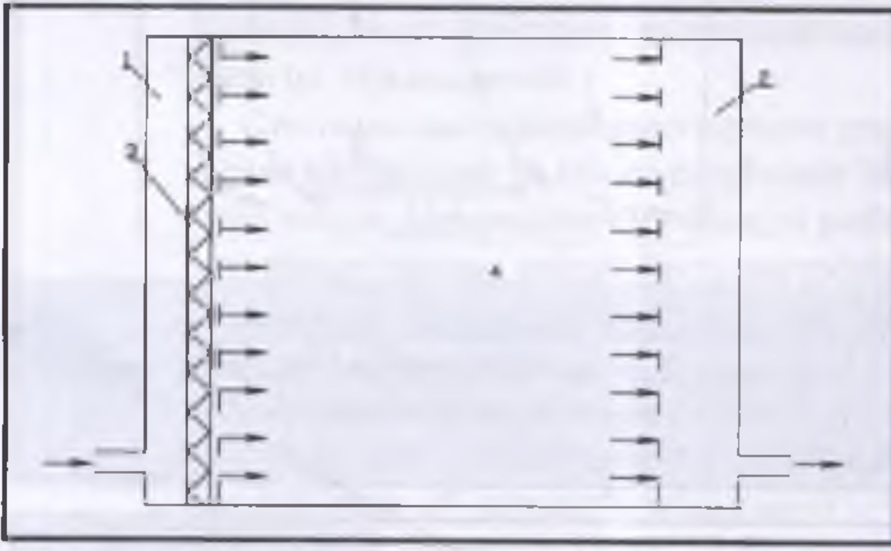 Рис. 17.12. Подача воздуха горизонтальным однонаправленным потоком:1. Приточная камера. 2. Вытяжная камера. 3.Фильтр. 4. Однонаправленный поток