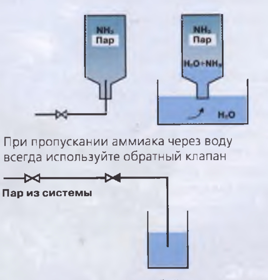 При пропускании аммиака через воду всегда используйте обратный клапан.