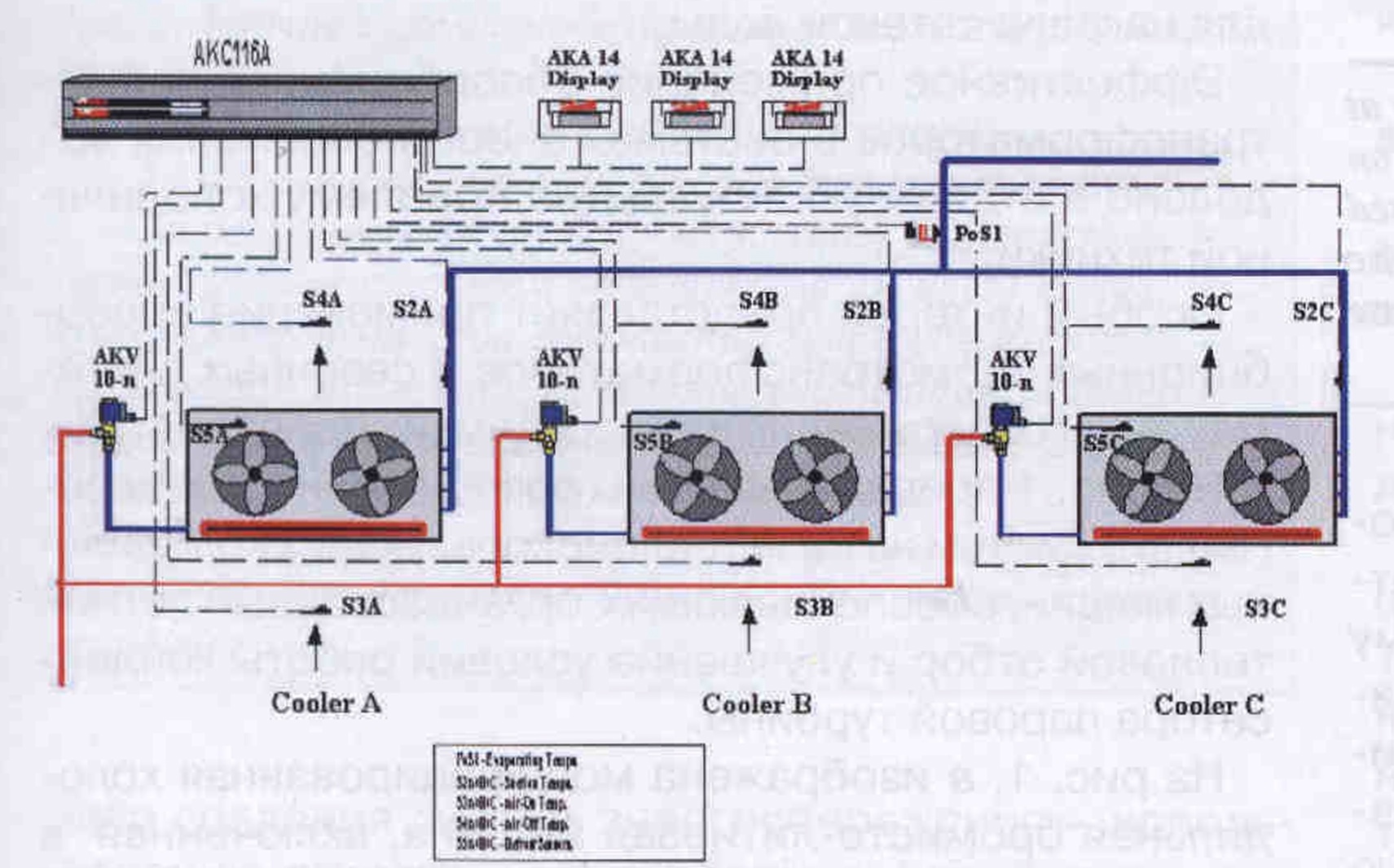 Для удешевления системы при управлении несколькими испарителями, расположенными на одной линии всасывания, к одному датчику давления может быть подключено до 10 контроллеров ЕКС 414А.