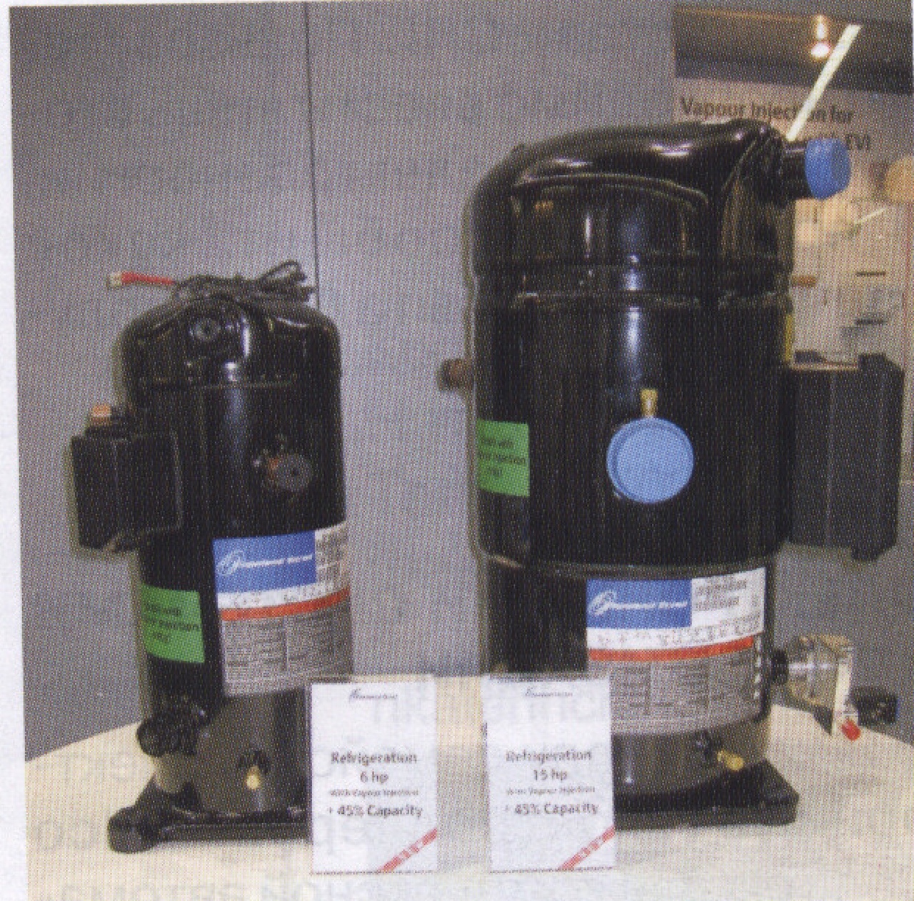 Новое поколение компрессоров ZH с впрыском хладагента по технологии EVI позволяет получать еще более горячую воду, нагретую до 65 °C. Такие теплонасосные системы хорошая альтернатива имеющимся бойлерным системам благодаря значительной экономии в энергопотреблении. Они находят применение в том числе в странах с холодными зимами, например в Скандинавии.