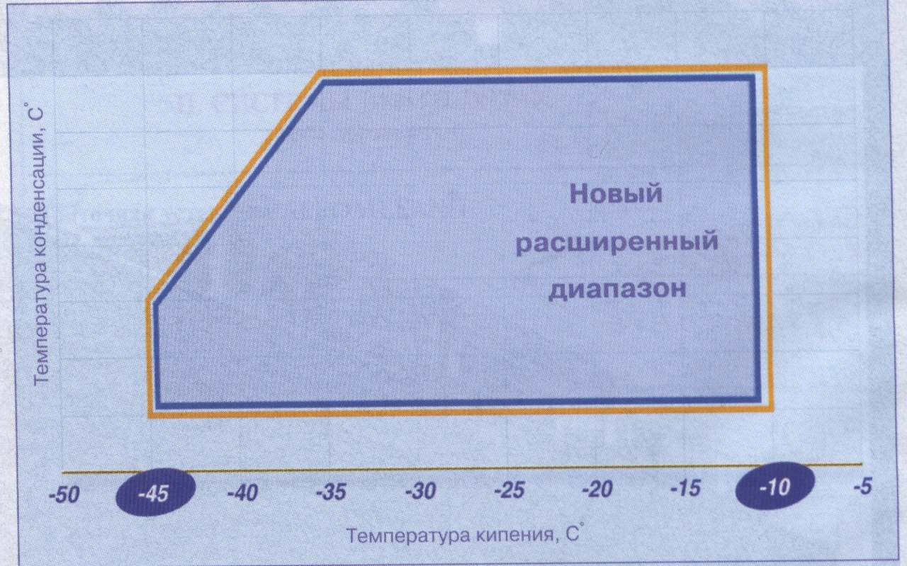 Увеличенный диапазон температур кипения позволит существенно расширить область применения компрессоров (рис. 2). Теперь одииС и тот же компрессор может быть использован как для заморозки, так и для хранения.