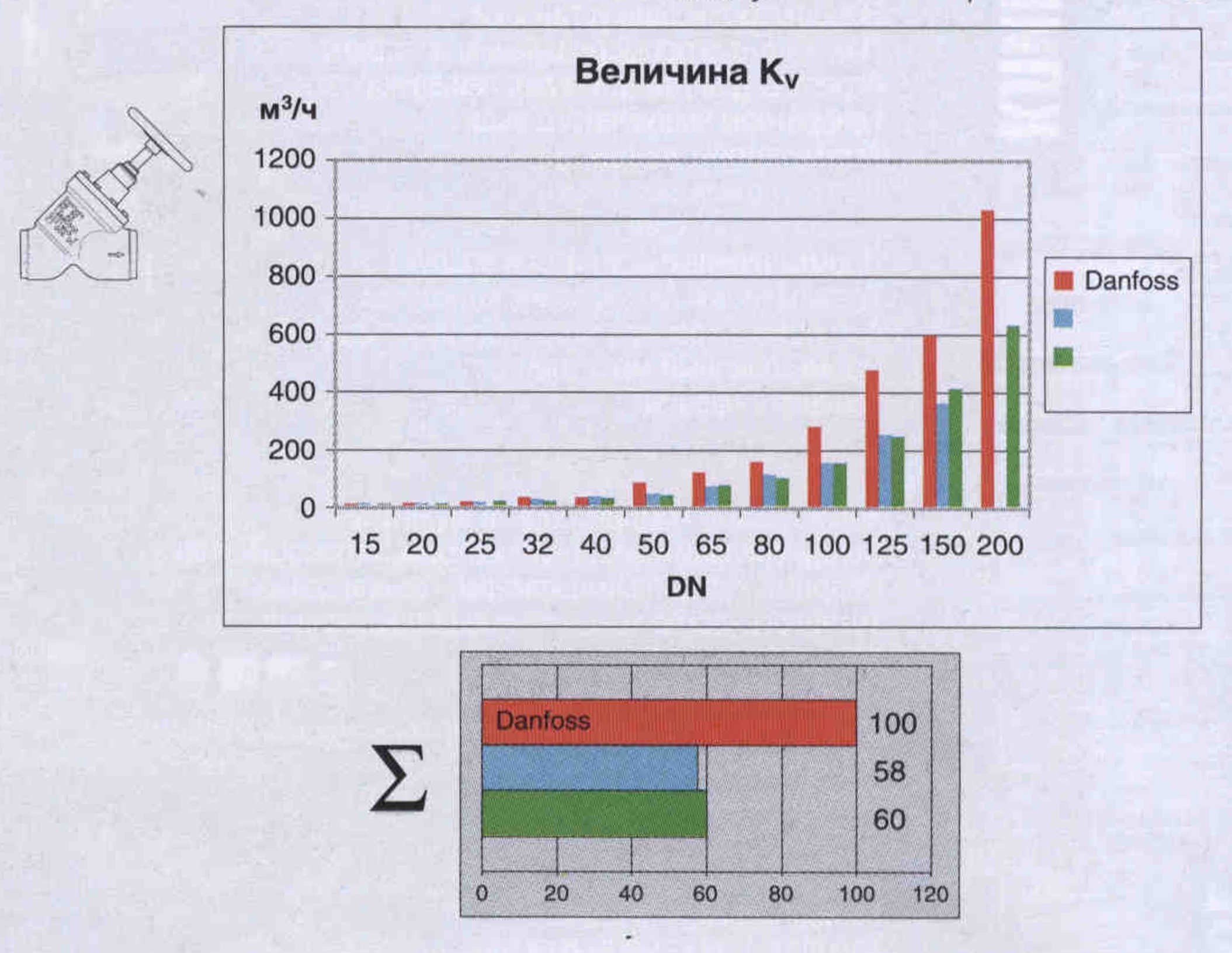 Рис. 4. Сравнение величины Kv для проходных запорных вентилей