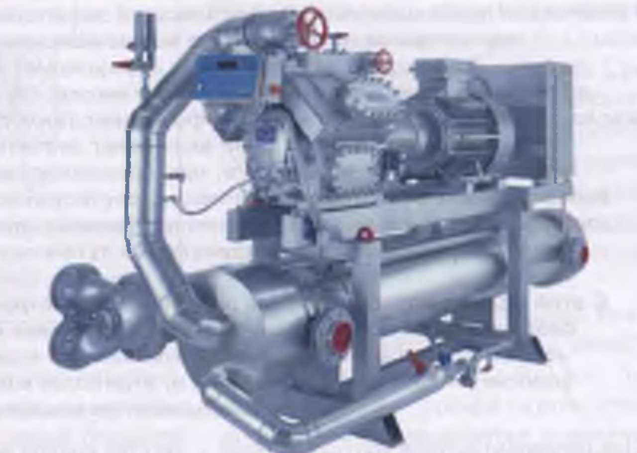 - применение поршневых и винтовых компрессоров с кожухотрубными испарителями и конденсаторами обеспечивает экономичную работу и высокий КПД.