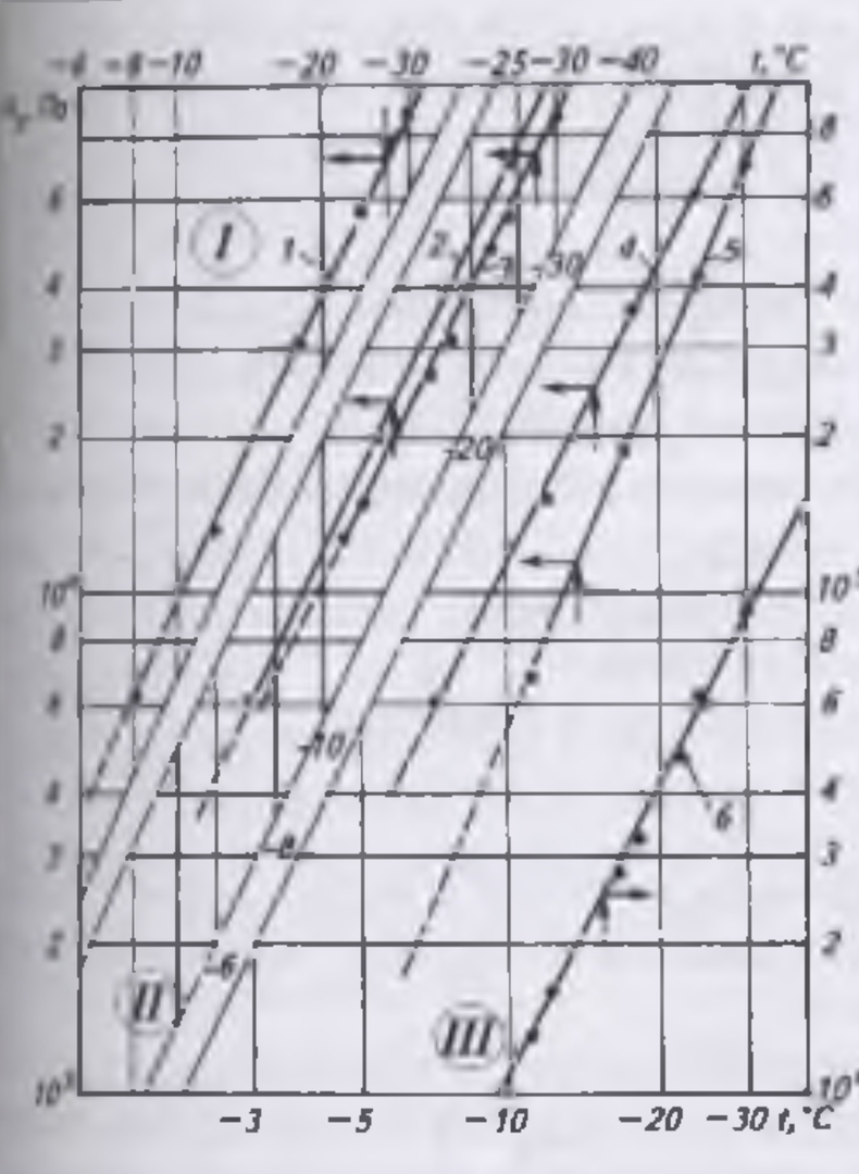 Математическая обработка экспериментальных данных позволила выявить вид зависимости изменения предельного напряжения сдвига θ0 (Па) мороженого при температурах закаливания от —6 до -30 °C. В этом интервале температур кривые Q=f(t) спрямляются влогарифмических шкалах (рис. 1) и имеют следующий вид: