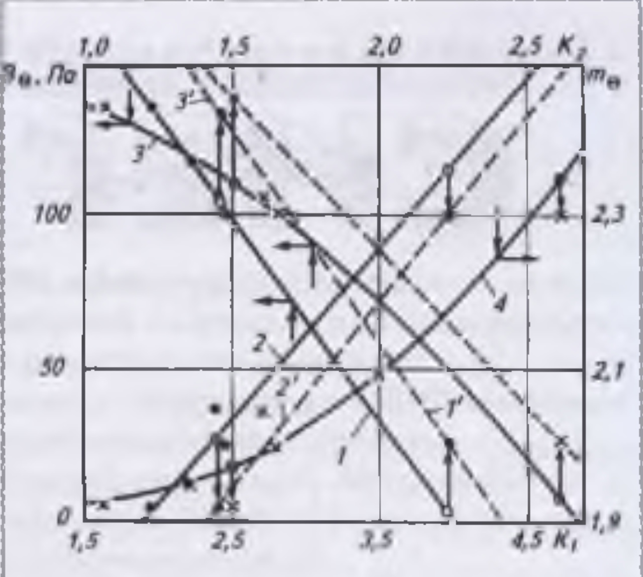 Зависимость Bθ и m0 от показателя К1 характеризуют прямые 1и 2 (см. рис. 2), обработка которых позволила получить следующую обобщенную зависимость для определения ПНС мороженого.