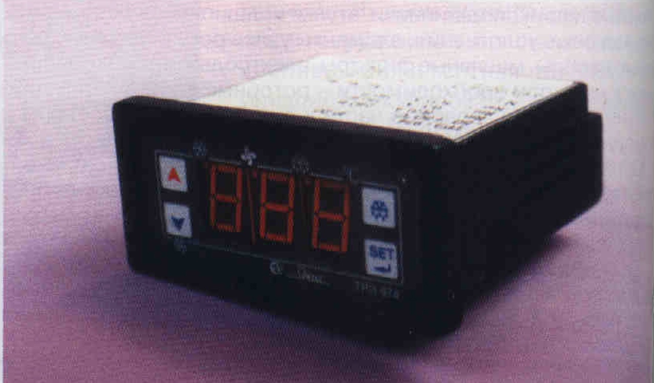 Электронный регулятор температуры ТРЭ974 (рис. 2) с цифра вой индикацией текущего значения температуры служит для автоматического контроля температурного режима в морозильные камерах, холодильных прилавках и другом торговом, а также промышленном холодильном оборудовании. Эти приборы обеспечивают весь цикл работы холодильной установки: поддержание температуры в камере; управление вентилятором и компрессором; периодическую автоматическую оттайку испарителя; контроль температуры при разморозке; управление тэном; контроль режима «Набор холода», а также выполняют функции защиты от несанкционированного изменения параметров и предупреждение об аварийных ситуациях (отказе любого из датчиков и выход температуры в камере за заданные пределы) путем сигнализации с выдачей диагностического сообщения. ТРЭ974 функционер полностью совместим с аналогичным прибором EWPC Rитальянской фирмы ELIWELL. Прибор оснащен четырьмя защищенными реле для управления компрессором, оттайкой, вендорами воздухоохладителей и устройством аварийной сигнализации. Контролируемые параметры и их значения выбирали (программируются) нажатием кнопок на лицевой панели и вносятся в энергонезависимую намять прибора. Программирование прибора имеет два уровня: уровень пользователя, на котором можно произвести изменение значения контрольной точки и уровень наладки.