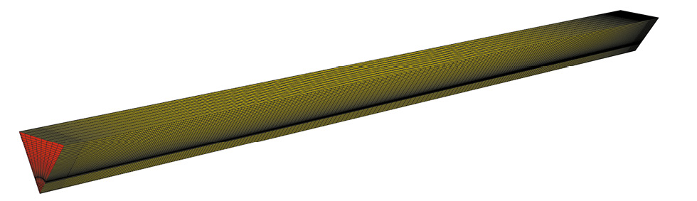 Структурированная сетка расчетной области, состоящая из 562 380 элементов, изображена на рис. 2.