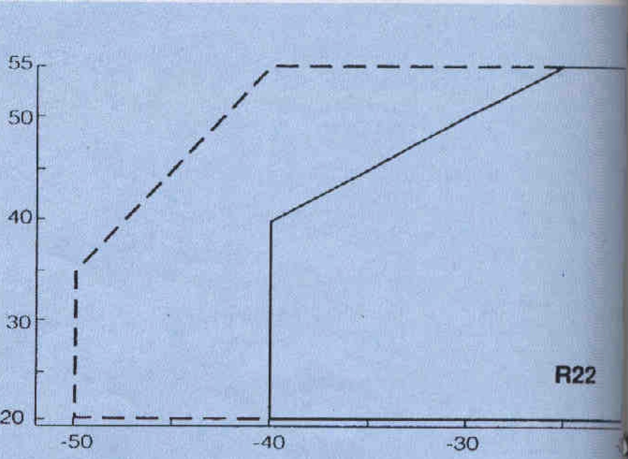 Рекомендуемая область применения его CIC в одноступенчатых компрессорах с учетом изложенных выше ограничений показана на рис. 2 сплошной. Вместе с тем нормальное функционирование компрессора обеспечиваем при расширении этой области до определённых границ, которые на рис. 2 показаны пунктиром. Использование CIC в области, показанной пунктир хотя и технологически допустимо, должно быть ограничено вследствие холодопроизводительности, xолодильного коэффициента и показателей надежности.