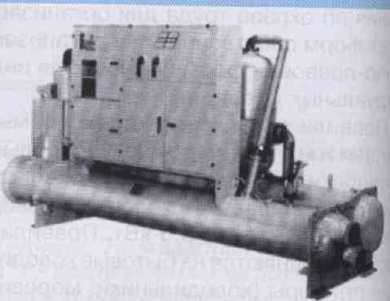 Холодильная машина WCFX45B состоит из трех винтовых компрессоров фирмы HARTFORD COMPRESSORS типа SMC с ротором диаметром 127 мм (отношение L/D = 1 ,5)*. И Герметичное исполнение компрессоров в сварном стальном кожухе обеспечивает их компактность и высокую надежность. Такое техническое решение для компрессоров аналогичной производительности не реализовано ни одной другой компанией в мире. На некоторых объектах компрессоры данной конструкции проработали без капитального ремонта 200 000 ч. Для циркуляции хладоносителя и оборотной воды используются одноступенчатые лопастные горизонтальные насосы типа NK фирмы DAB (Италия). Контур циркуляции хладоносителя выполнен из нержавеющей стали. В системе оборотного водоснабжения для охлаждения конденсаторов применена высокоэффективная вентиляторная градирня типа ТМА21-291/СТ фирмы DECSA (Италия). Градирня состоит из металлического корпуса и насадки из поливинилхлорида. Металлические детали корпуса защищены от коррозии. Панели из оцинкованной стали с внешней стороны покрыты слоем полиуретановой эмали, устойчивой к атмосферной коррозии и солнечной радиации, а с внутренней - эпоксидным лаком с добавлением битума, защищающим от воздействия капельной влаги. Детали насадки хорошо турбулизируют воздушный поток и обеспечивают большую площадь смоченной поверхности. Поток воздуха создают два осевых вентилятора, приводимых в действие двухскоростными электродвигателями. Степень защиты электродвигателей от влаги и пыли P55. Вода распределяется че рез систему коллекторов из поливинилхлорида и форсунок из специальных морозоустойчивых сортов резины. Форсунки могут быть легко демонтированы и промыты без применения инструментов.