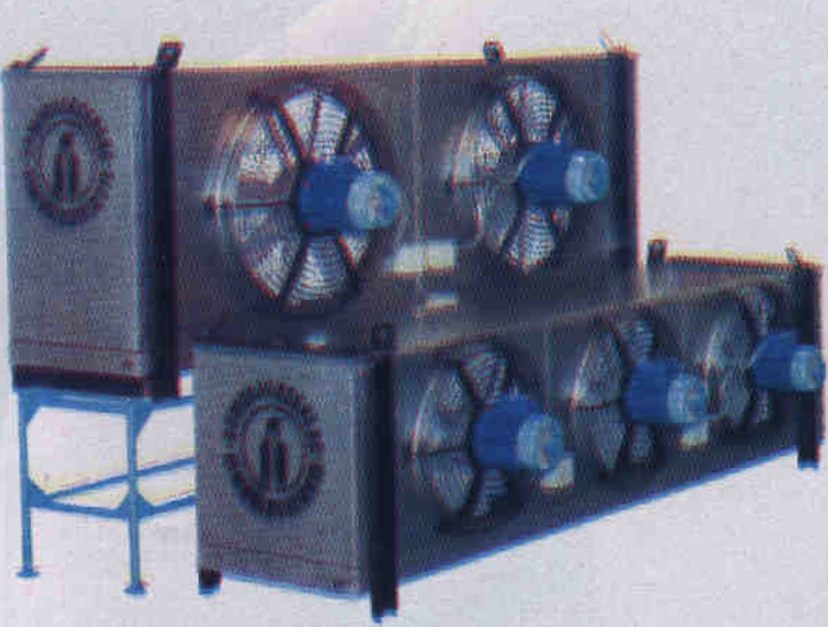 В результате проведенного комплекса научно-исследовательских и опытно-конструкторских работ фирма одновременно с испарительными конденсаторами освоила серийный выпуск более 500 моделей подвесных воздухоохладителей АВП и 300 моделей навесных воздухоохладителей АВН. Применение эффективной теплообменной поверхности (оптимальные геометрические) параметры, шахматное расположение труб в пучке, качественный контакт труб с ребрами благодаря горячему цинкованию) и высокоэффективных (ηп= 0,75...0,85) осевых вентиляторов обусловило получение техноэнергетических и габаритных параметров воздухоохладителей АВН и АВП, вполне соответствующих лучшим западным образцам. Это позволило сократить аммиакоемкость холодильных систем с воздухоохладителями АВН и АВП по сравнению с системами батарейного охлаждения в 15—25 раз.