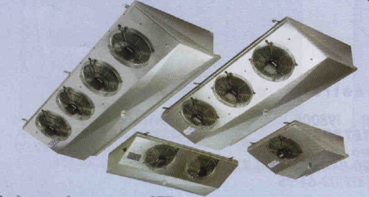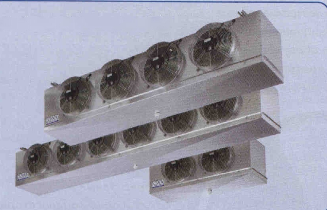 Серии плоских воздухоохладителей DFE и IDE обеспечивают двусторонний воздушный обдув, имеют среднюю дальнобойность. Они применяются в больших камерах, а также в производственных (рабочих) помещениях. Эти воздухоохладители снабжены вентиляторами с двумя частотами вращения, что позволяет регулировать дальнобойность и производительность испарителя.