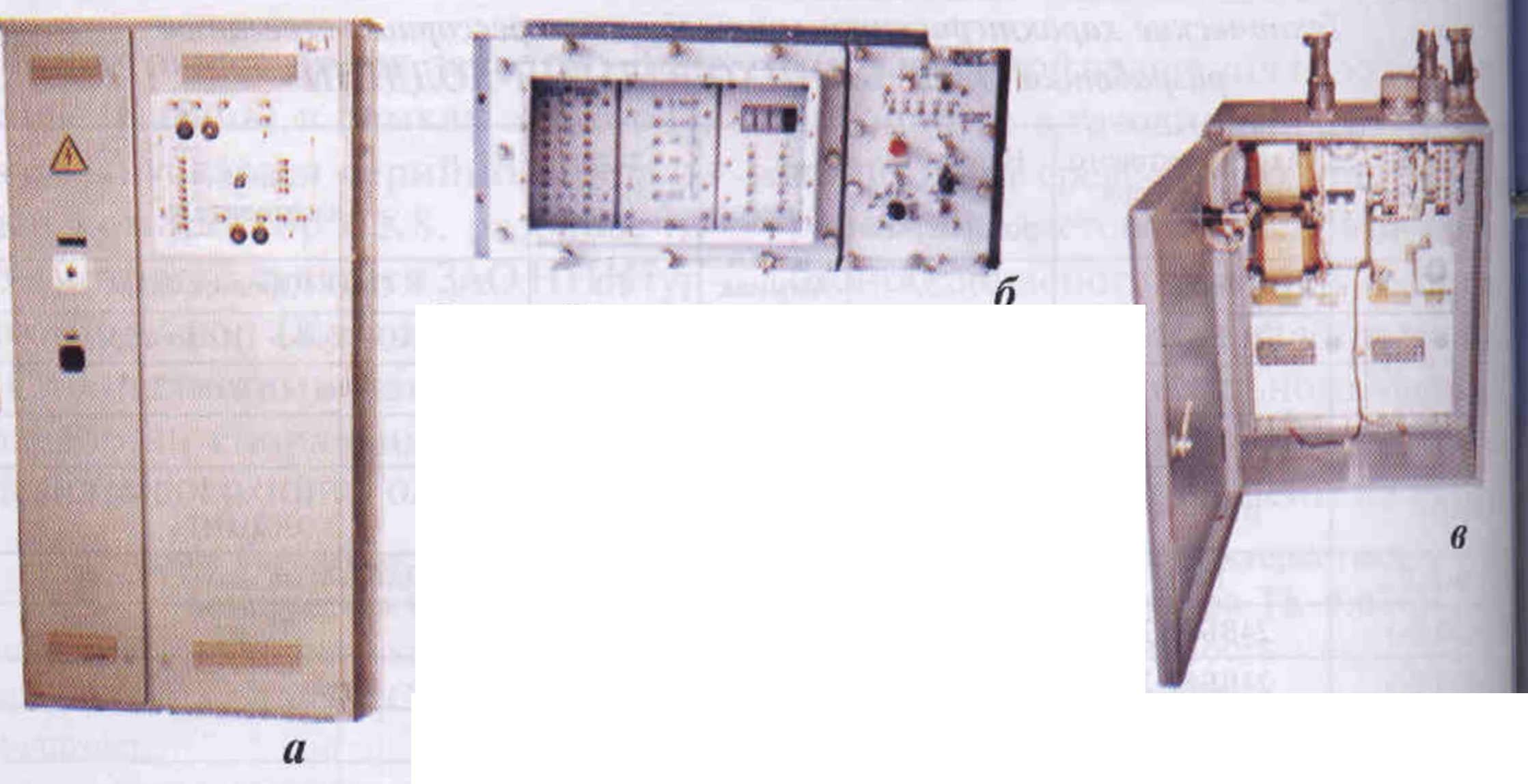 Рис. 9. Элементы автоматизированных систем, изготовляемых ОАО «ВНИИХОЛОДМАШ-ХОЛДИНГ»; а — система автоматического управления (САУ) машиной 21МКТ50 (блок управления и силовая часть); б — двухуровневая САУ СМКТ165 (блок управления); в — микропроцессорная САУ для трехходовых регуляторов температуры и управления