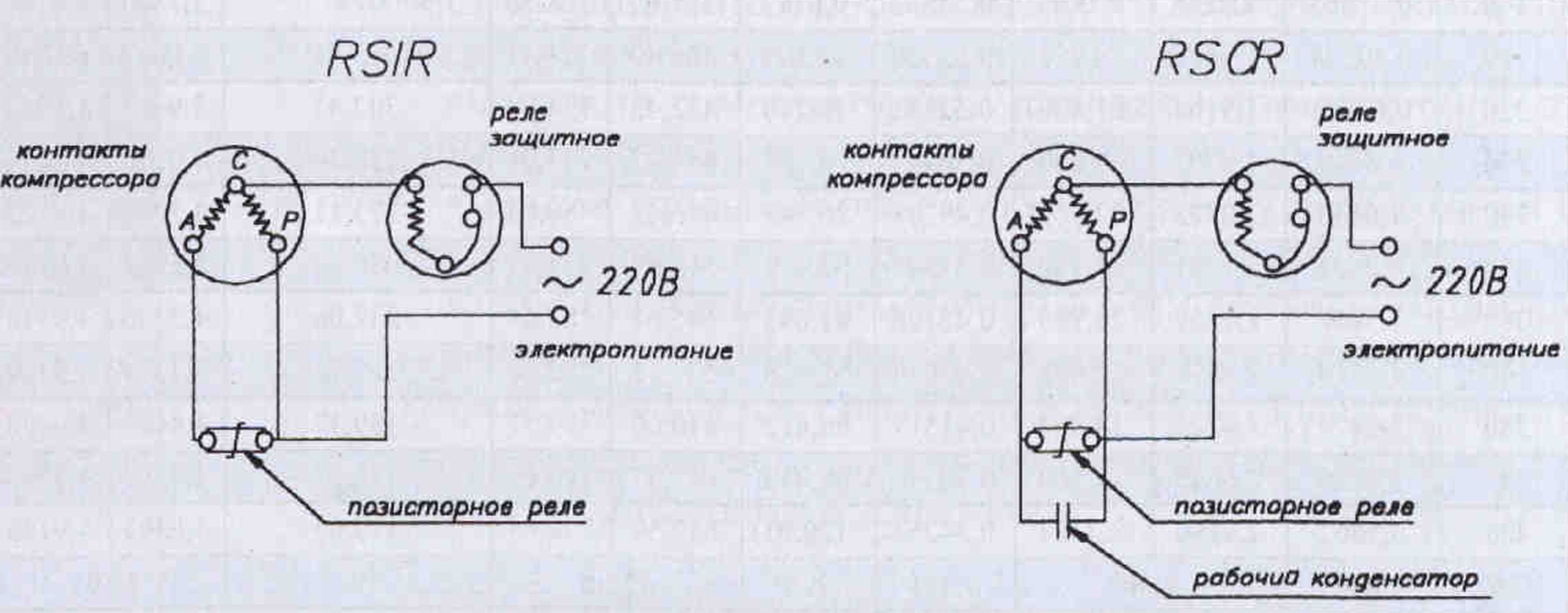 Электрические схемы компрессоров с двигателями RSIR, RSCR.