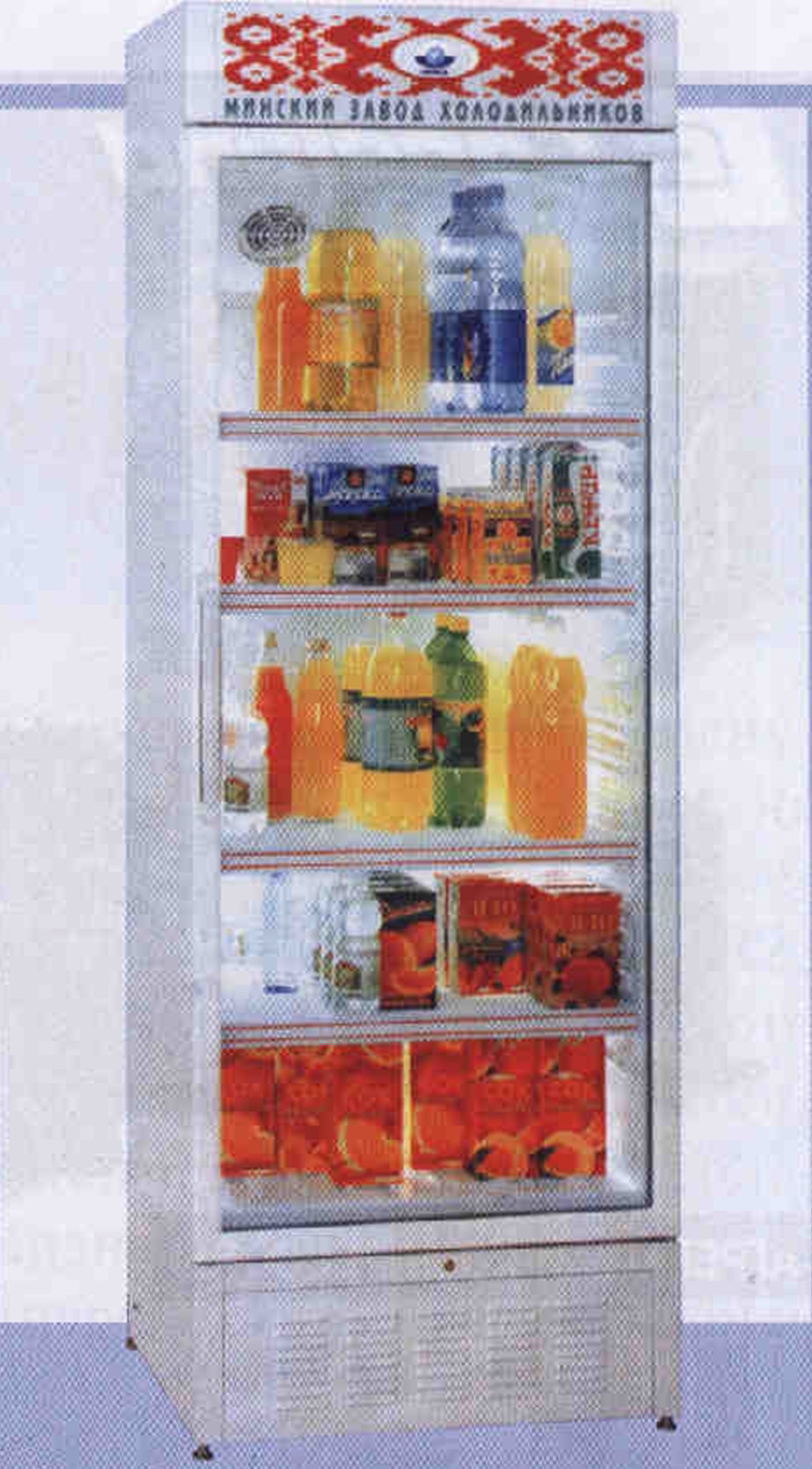 Рис. 6. Холодильный шкаф-витрина «Атлант ШВУ-0,4-1,3». Общий объем 410 л. Габаритные размеры (ширина х глубина х высота) 700x570x2005 мм