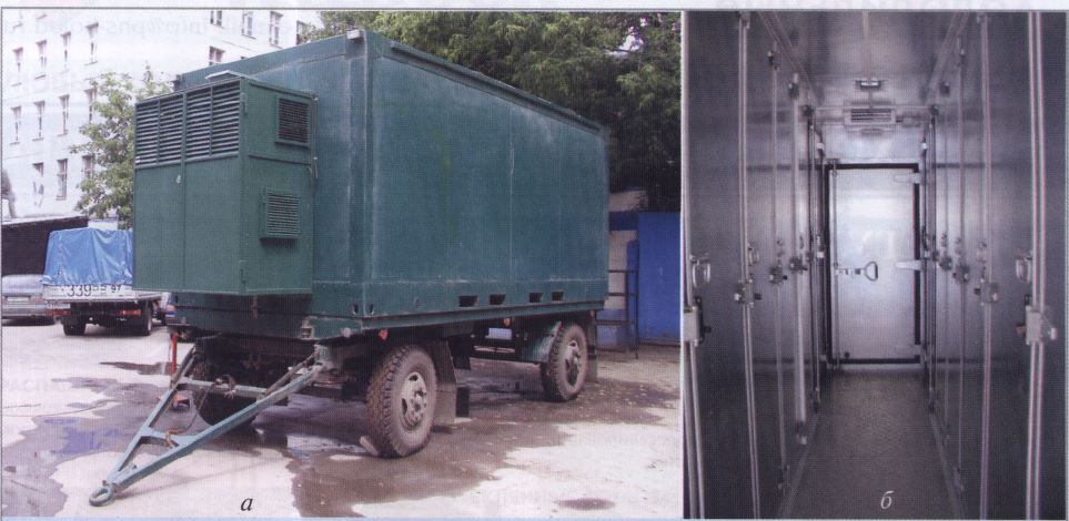 Рис. 5. Большегрузный многосекционный кузов-контейнер ПФИ-5: а — общий вид; б — вид внутри