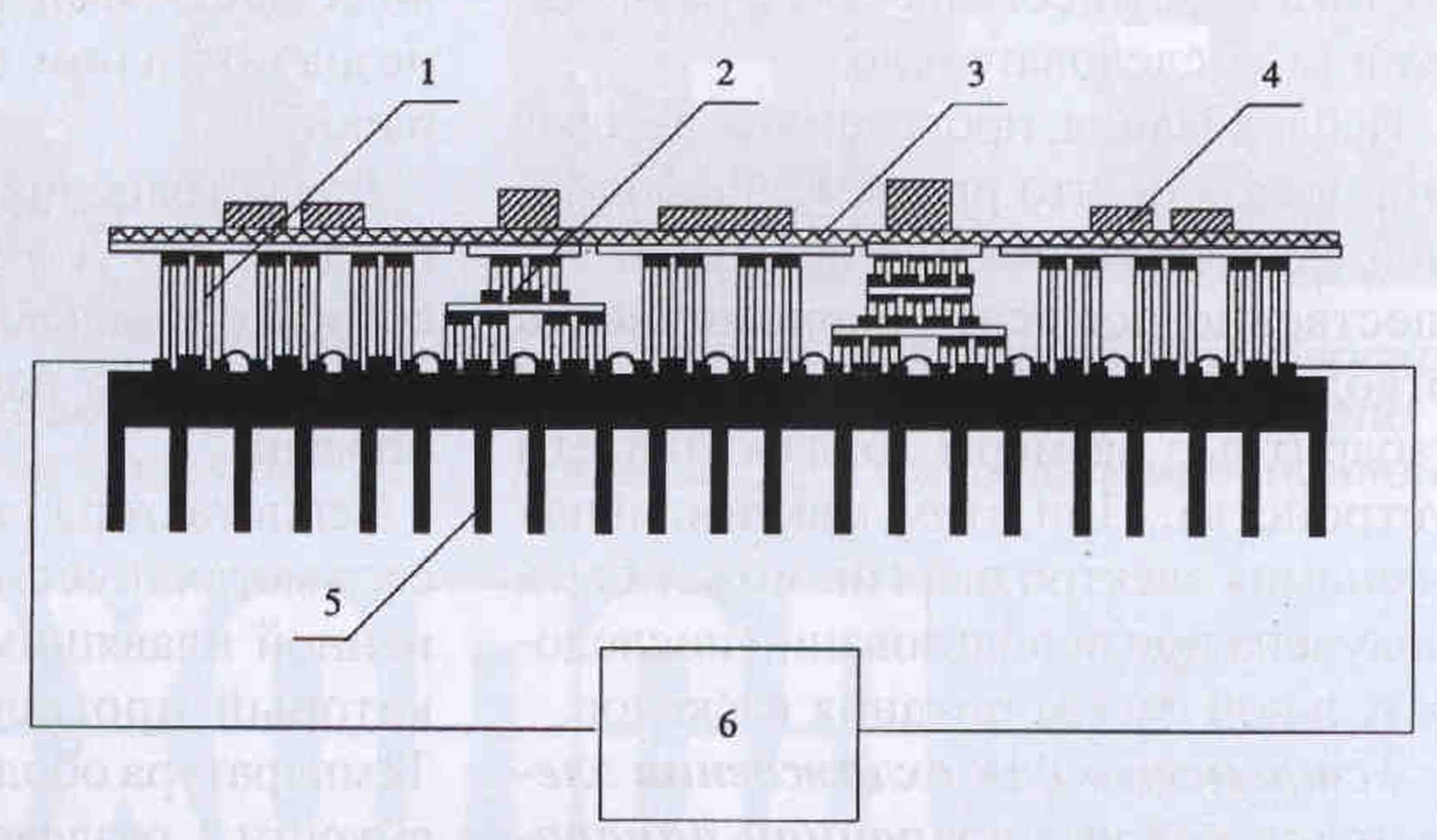 Базовая термоэлектрическая батарея 1 обеспечивает начальный уровень охлаждения электронной платы 3 с элементами 4, характеризующимися относительно небольшими тепловыделениями. Дополнительные термоэлектрические батареи 2, образующие верхние каскады, расположены под элементами 4, характеризующимися большими тепловыделениями. Эти батареи предназначены для дополнительного теплосъема в соответствии с уровнем тепловыделений каждого из элементов 4. Теплота отводится от тепловыделяющих спаев каскадной термоэлектрической батареи посредством среды, протекающей через змеевик 5. Эта среда в зависимости от отводимой мощности может быть воздухом или жидкостью. Питание каскадов термоэлектрической батареи от источника постоянного электрического тока 6 осуществляется параллельно или последовательно.
