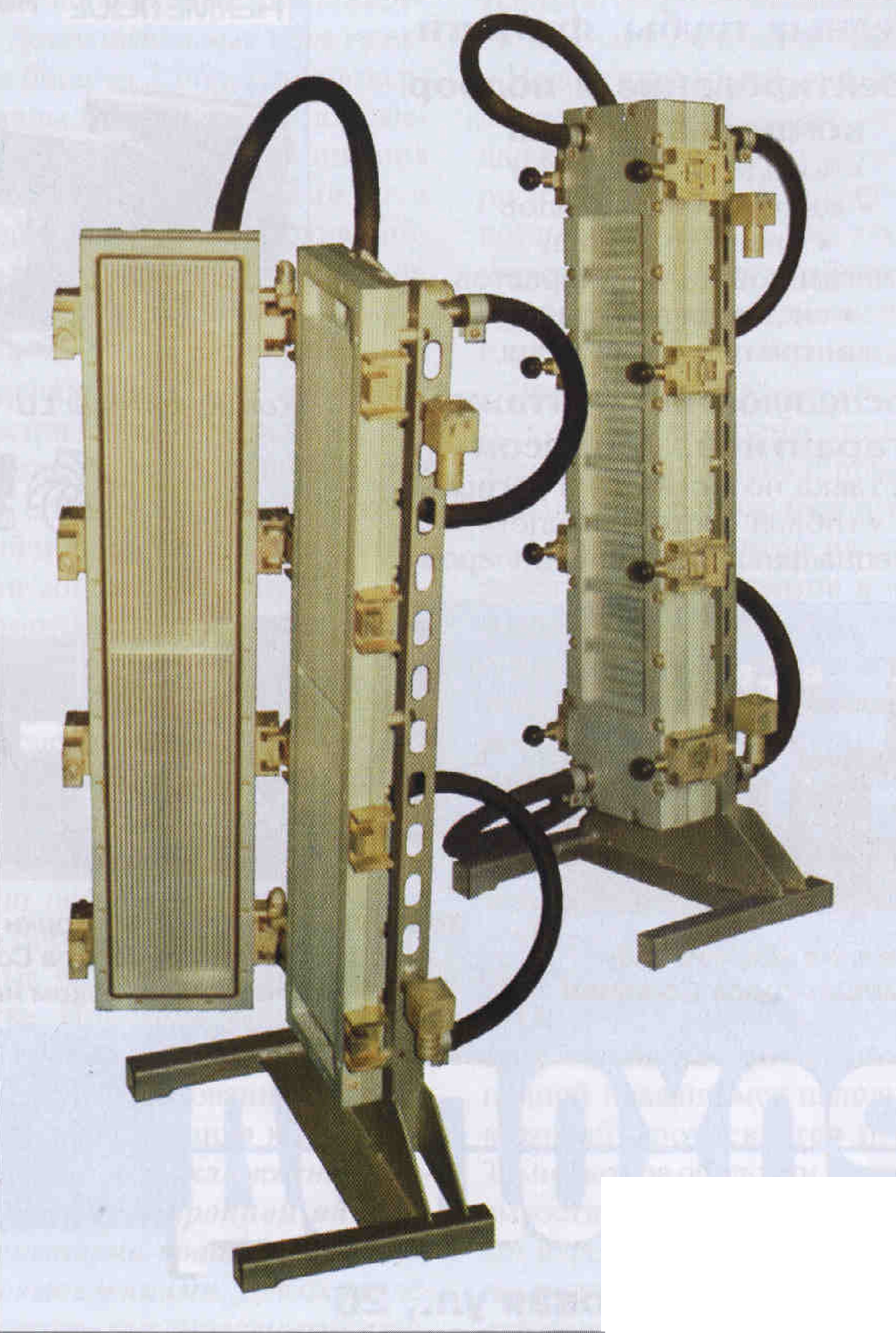 Спроектированный для этих целей двухконтурный жидкостный теплообменник имеет модульное исполнение. Модули производительностью по парному молоку 250 л/ч легко соединяются в батареи любой производительности (вплоть до 1000... 1500 л/ч), что позволяет использовать их при различных схемах доения коров1.