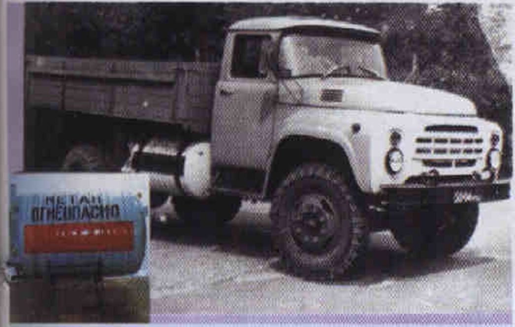 На рис. 1 показаны такой бак и автомобиль, оснащенный системой хранения и подачи ожиженного природного газа (метана), используемого в качестве топлива. Важно подчеркнуть отличие таких автомобилей от автомобилей, использующих сжатый природный газ в тяжелых баллонах. Здесь применен криогенный бак из легкого алюминиевого сплава, давление в котором не превышает 3·105 Па (3 кгс/см2). Поэтому при вместимости бака в 190 л вся система в незаправленном состоянии имеет массу всего около 80 кг, а пробег грузовика от одной заправки достигает 350 км. При использовании сжатого природного газа система весит почти в 10 раз больше, соответственно снижается полезная нагрузка автомобиля. Было изготовлено около 100 таких систем с криогенным баком. Опыт их эксплуатации показал, что использование ожиженного природного газа дает существенные экономические и экологические (загрязнение окружающей среды снижается вдвое) преимущества.