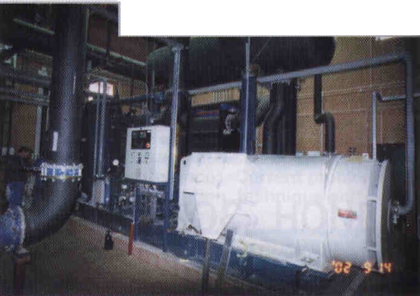 В результате была обеспечена устойчивая и надежная работа всех узлов холодильной установки в широком диапазоне эксплуатационных параметров как в ручном, так и в автоматическом режимах. Применение в холодильных машинах электродвигателей мощностью по 500 кВт напряжением 10 кВ позволило получить существенную экономию капитальных и эксплуатационных затрат.