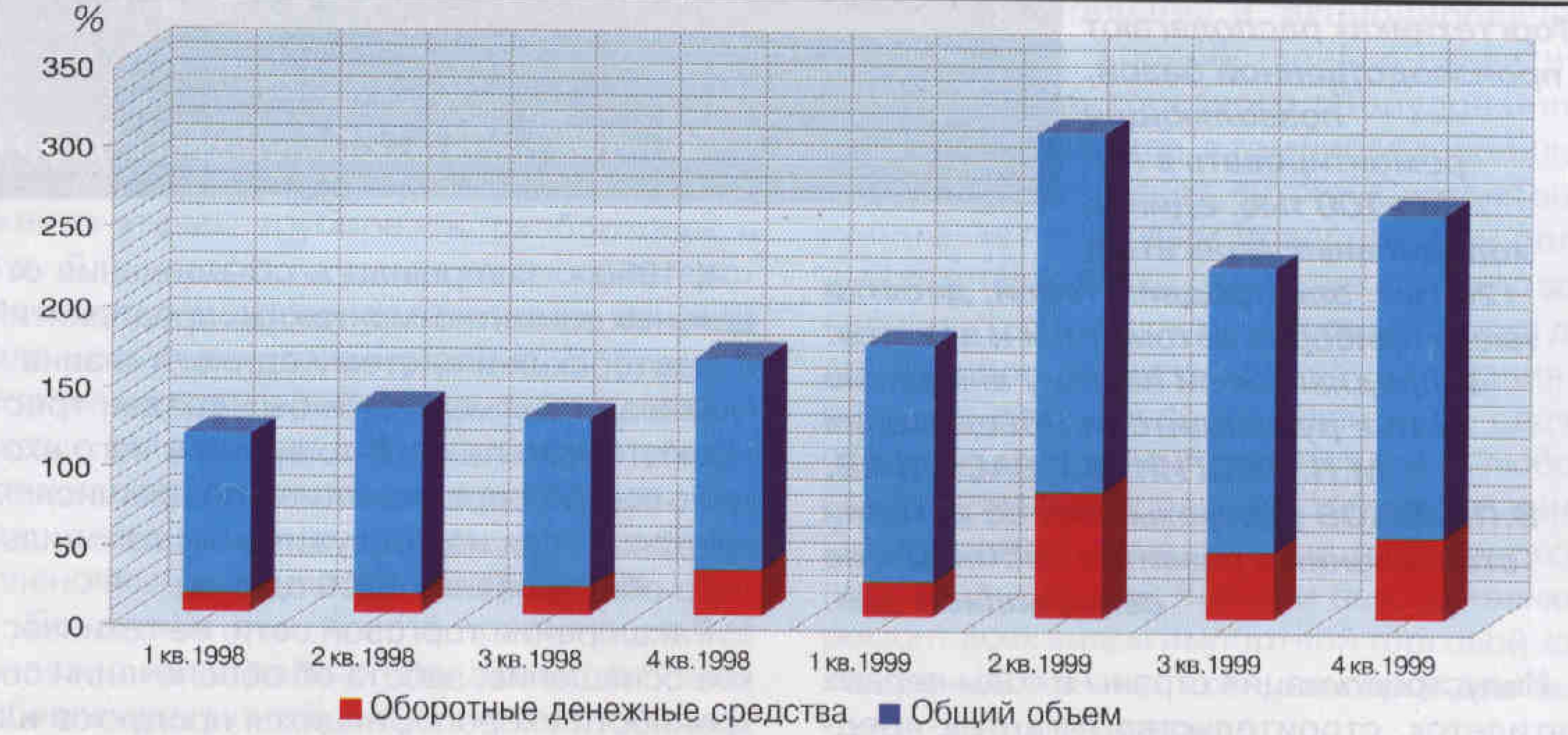 Острым вопросом экономики предприятия, как и экономики всей страны, является хроническое отсутствие оборотных денежных средств. Даже в лучшие времена доля бартера и взаимозачетов не была меньше 75% (рис. 3). Стратегическая задача руководства предприятия на ближайшие годы заключается в сокращении бартера до 30- 40 %. Задача сложная и непосредственно связанная как с повышением качества продукции, так и с поиском новых рынков сбыта. Для ее решения по инициативе О.А.Шикерова на одной из площадок завода был организован Межрегиональный торгово- промышленный центр (МТПЦ), соучредителями которого стало свыше 20 промышленных предприятий, торговых фирм и банков Свердловской области. Руководство Свердловской области, положительно оценив это начинание, поручило МТПЦ представлять коммерческие интересы предприятий Уральского региона в Московском международном центре интеграции и развития, где организована выставка товаров и оборудования «Торгово-выставочный центр-Средний Урал».