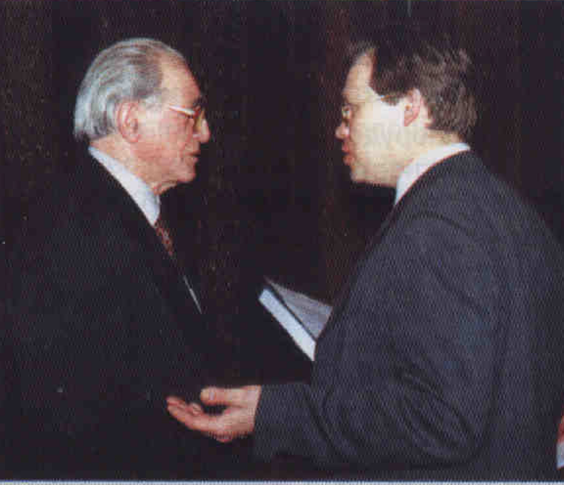 Генеральный директор компании «Евроклимат» Г. К). Горовой беседует с академиком В. И. Богословским
