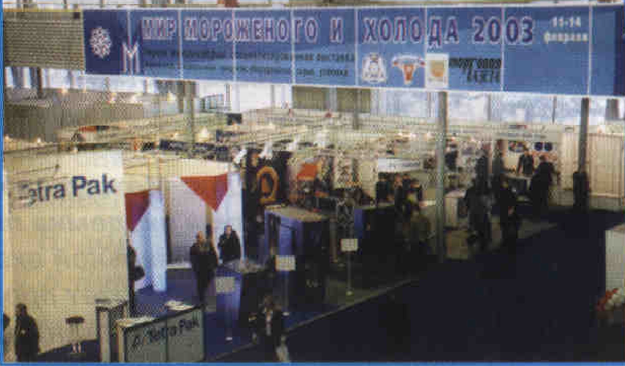 On February 11-14, 2003 the First International Specialized Exhibition "The World of Ice Cream and Cold 2003" took place in Pavilion No. 57 of the All-Russian Exhibition Center (Moscow). It was organized by the Russian Ice Cream Association and Rosmyasomoltorg with the support of the RF Ministry of Agriculture, the RF Ministry of Economic Development and Trade, the RF Ministry of Property Relations, the RF Chamber of Commerce and Industry, the Russian Union of Commodity Producers, the National Consumer Protection Fund and with the assistance of the Moscow Government and industry unions and associations. General sponsor of the exhibition is Prostor L. On the area of more than 7000 m2 exhibitors from 38 regions of Russia and 14 foreign countries presented their products to more than 183 people.