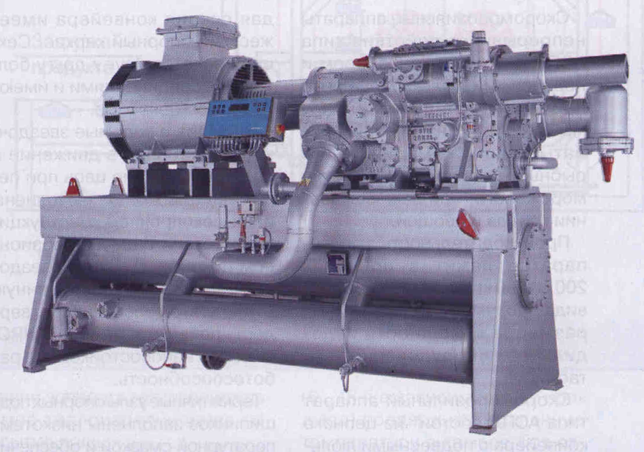 Вертикальное расположение роторов дает возможность боковых подсоединений к компрессору, что, в свою очередь, позволяет уменьшить монтажную высоту, снизить вибрации и уровень шума.
