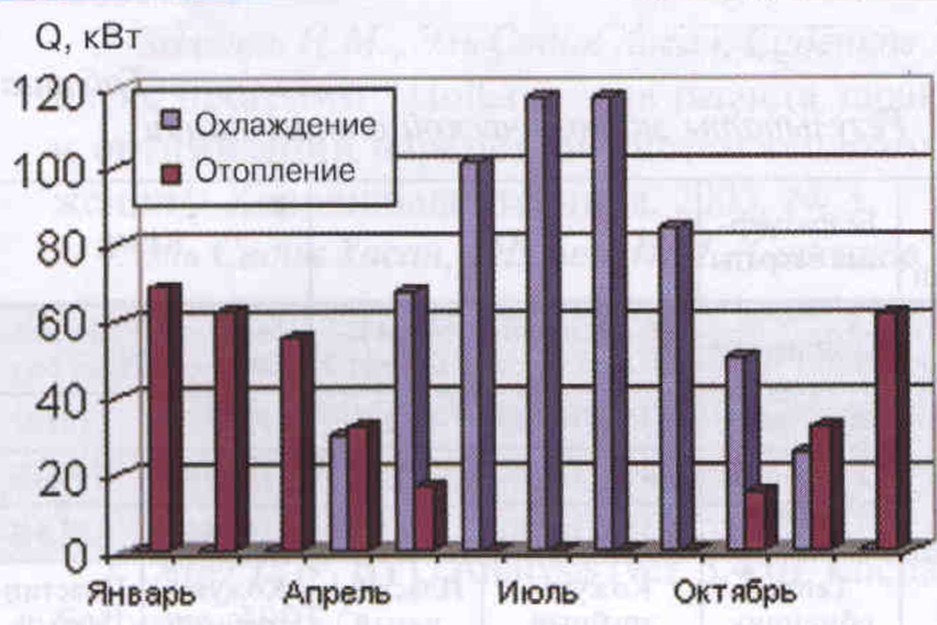 По результатам расчета выбраны нагрузки отопления, охлаждения и ГВС для летнего и зимнего периодов работы СТХС (см. табл. 2). При этом учтено, что СТХС должна обеспечить максимальную холодо- и теплопроизводительность.