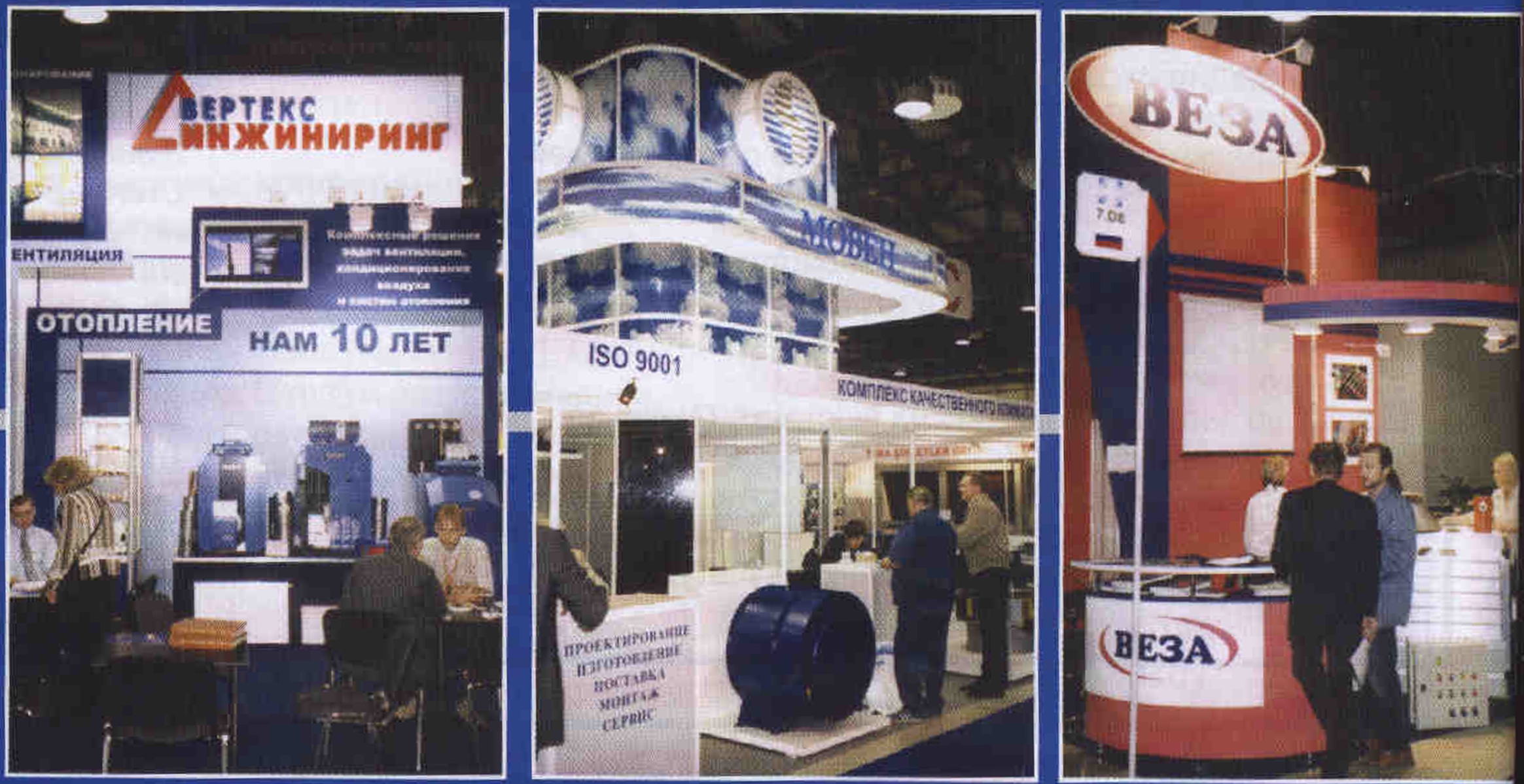 Некоторые монтажные фирмы, например «Гамма-Вент», предлагали создание систем вентиляции и кондиционирования на базе отечественных комплектующих производства таких фирм, как «Мовен», «Домодедовский машиностроительный завод «Кондиционер» (ДоКон), «Веза», представленных на выставке.