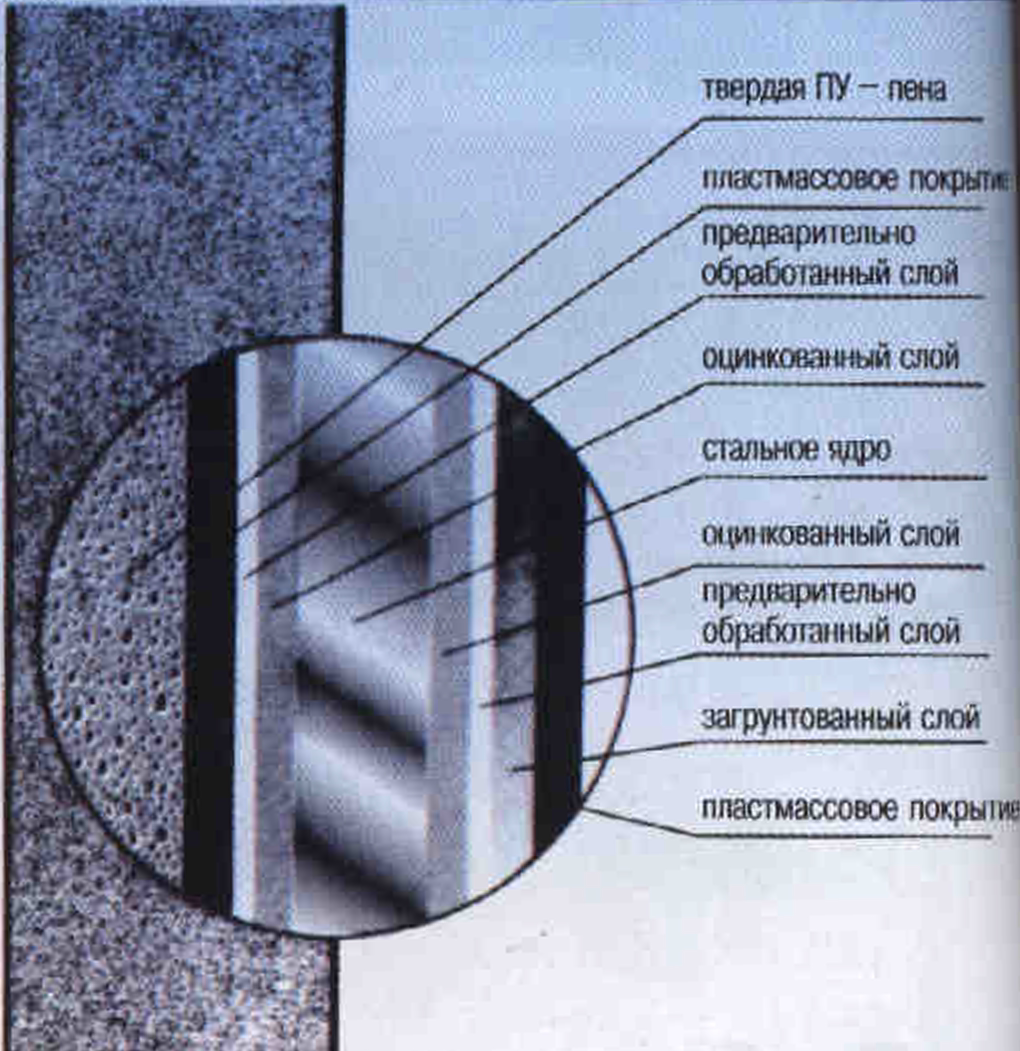 Жесткий пенополиуретан в сочетании с металлическими листами обеспечивает достаточную жесткость панели, которая становится самонесущей конструкцией. Это в ряде случаев позволяет отказаться от металлического каркаса при строительстве холодильников, что значительно сокращает расходы на их возведение.