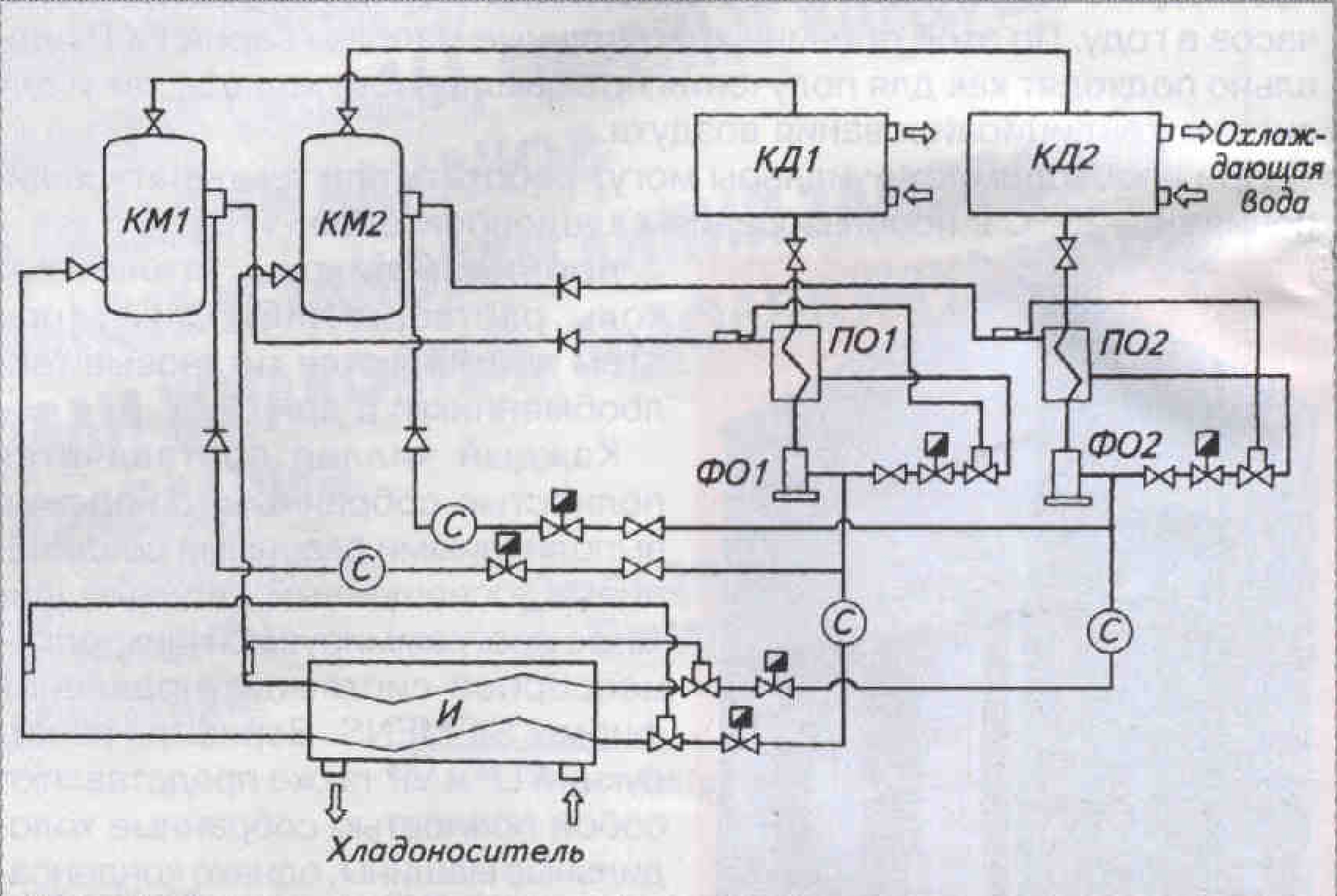 Рис. 1. Схема холодильной машины типа WCDX с двумя компрессорами.