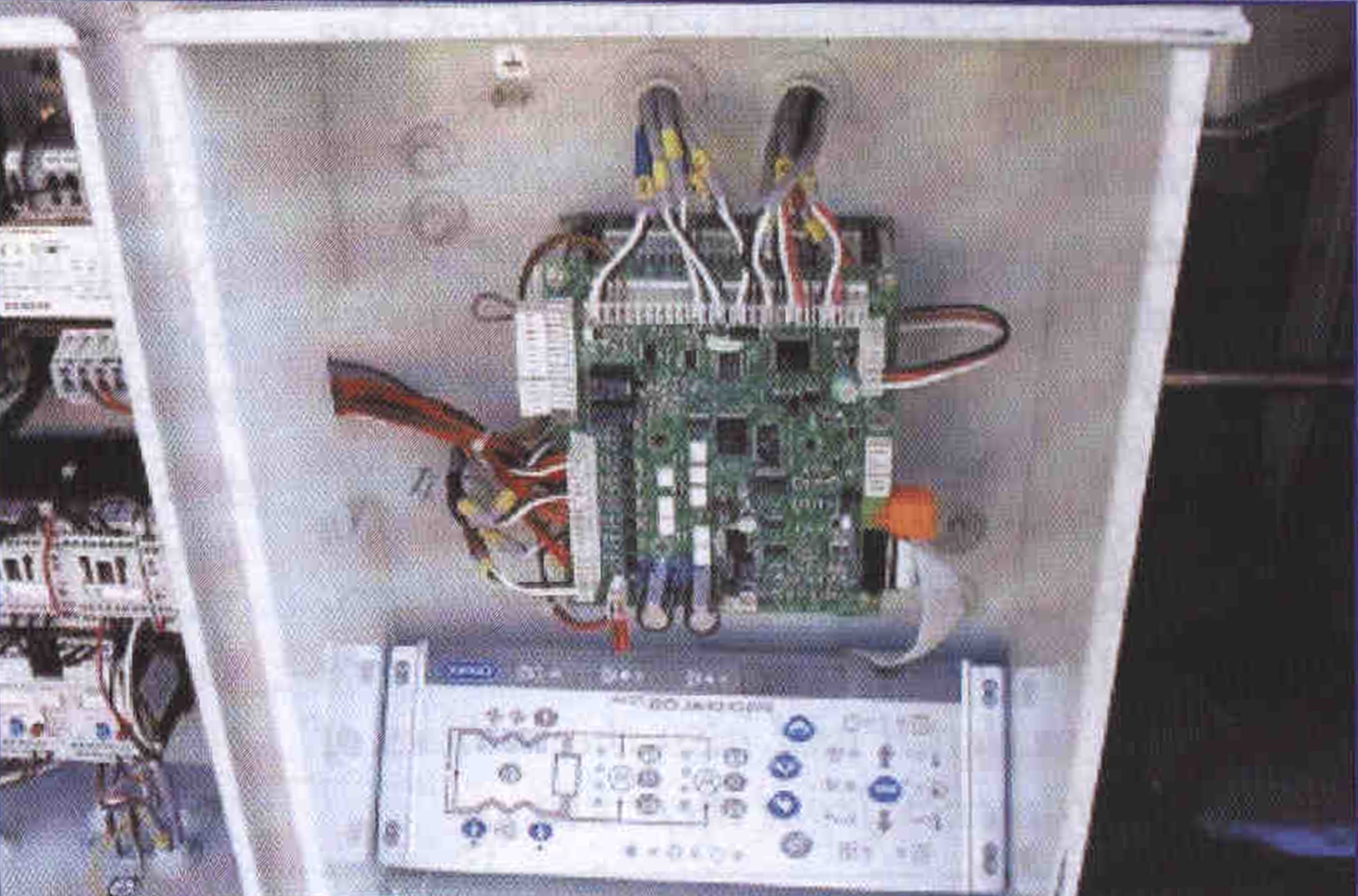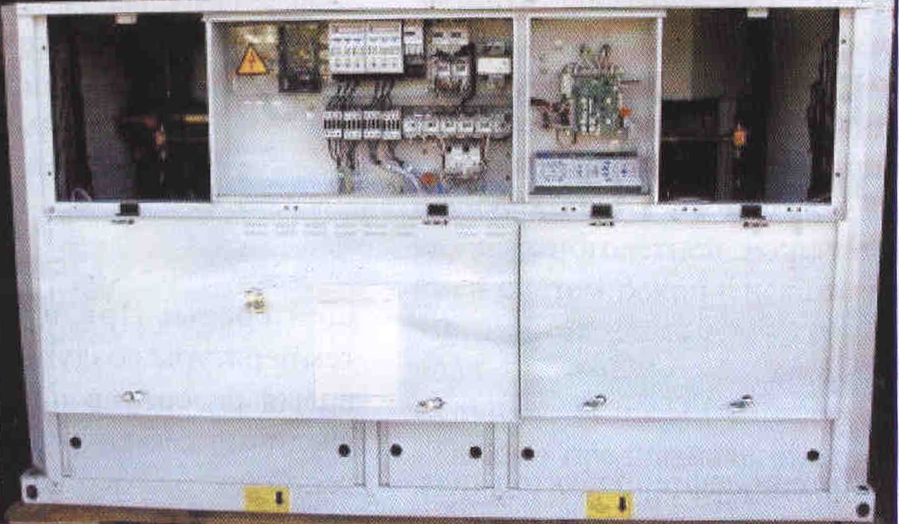 К преимуществам новых моделей следует также отнести общий управляющий щит, разделенный на два отсека: щит управления и силовой электрощит. В стандартный щит управления входят следующие компоненты: главный силовой выключатель, пусковое и защитное устройство для каждого компрессора, вентилятора и насосов. Антивандальное исполнение силового щита препятствует несанкционированному доступу к пуску установки. Холодильная машина подключается к трехфазной сети с изолированной нейтралью одним кабелем. Панель управления контроллера PRO- DIALOG PLUS удобно расположена под углом 45°С.
