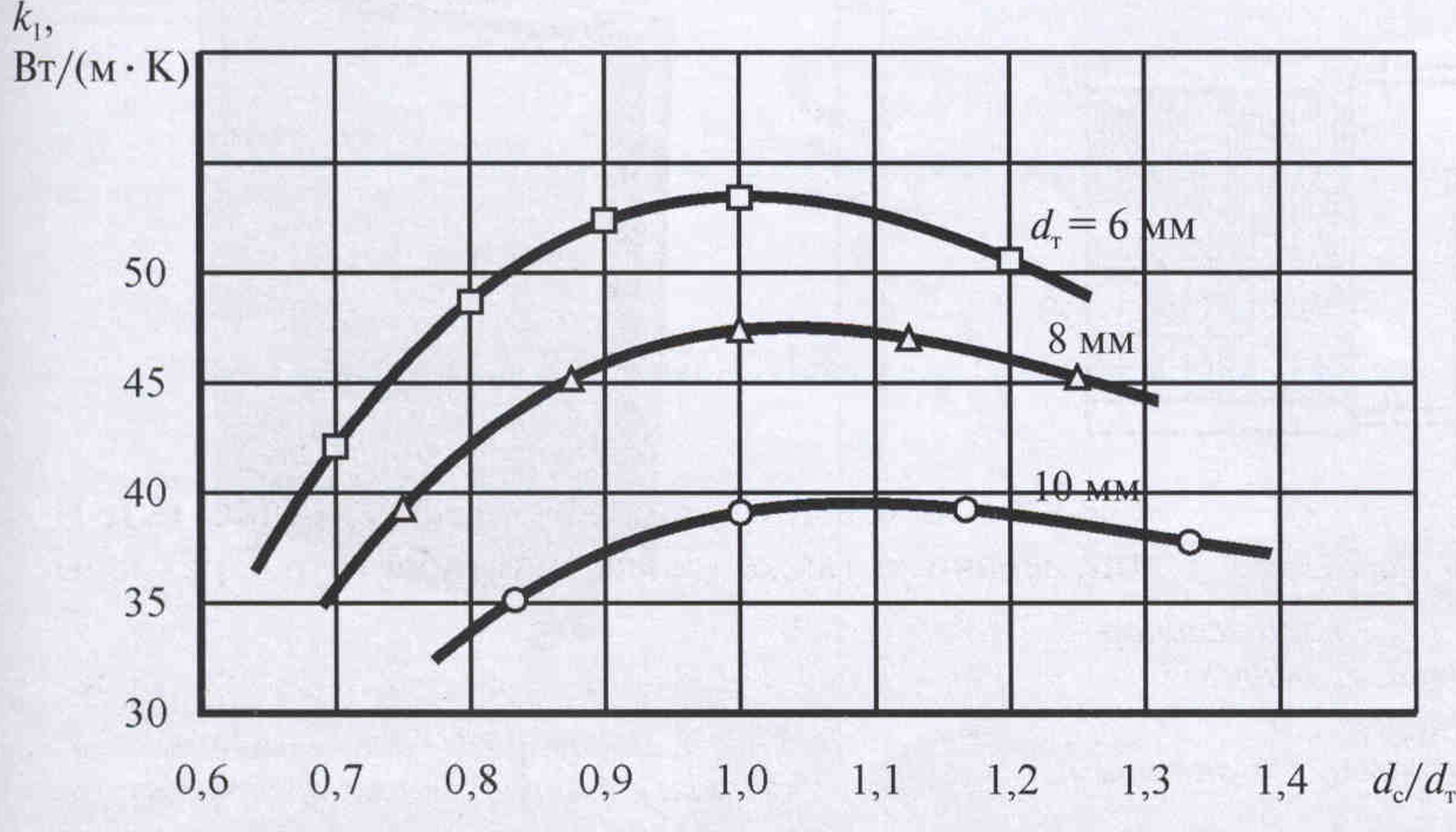 Что касается диаметра спирали dсто, как следует из предварительного анализа, его роль в формировании линейного коэффициента теплопередачи k1 неоднозначна.