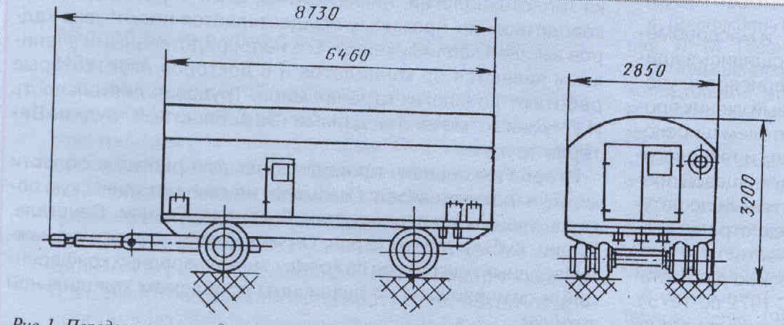 Станция ПХС-100 состоит из двух одинаковых передвижных холодильных установок ПХУ-50, смонтированных в фургонах типа “кунг”, установленных на шасси автомобильных прицепов МАЗ (рис.1).