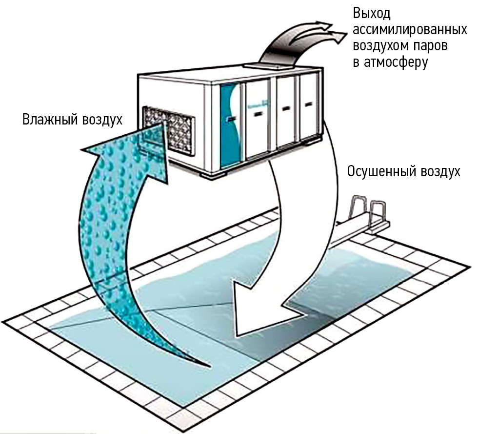 На ледовых аренах, как правило, возникают проблемы с влажностью, обусловленные двумя факторами: наличием влаги, которая в воздухе находится в виде водяного пара и наличием холодной поверхности льда, охлаждающей окружающее пространство и предметы. Основным источником влаги ледовой арены является наружный воздух, который попадает в помещение через вентиляцию. Повышенное содержание влаги в воздухе ведет к появлению конденсации и тумана в помещении, что, в свою очередь, приводит к коррозии, распространению плесени и порче строительных конструкций. Туман в помещениях, как правило, образуется при смешивании наружного воздуха и холодного воздуха над поверхностью льда. Конденсат в помещении оседает на потолке и предметах, вследствие понижения температуры ниже точки росы окружающего воздуха. Выпадение конденсата ухудшает качество ледового покрытия и делает его небезопасным для использования, а также при влажности более 60–70% происходит коррозия стальных конструкций и распространение плесени. При повышенной влажности микроклимат в помещении становиться некомфортным, так как воздух ощущается «сырым» и «липким».