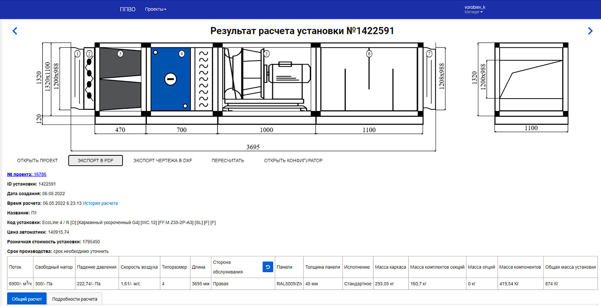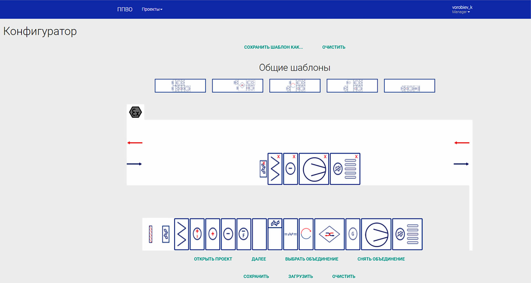 Для подбора теплообменных аппаратов на ледовой арене была использована программа ППВО (программа подбора вентиляционного оборудования), в которой мы имеем возможность структурировать необходимое нам оборудование, а после указания параметров для расчета на выходе получаем его характеристики.
