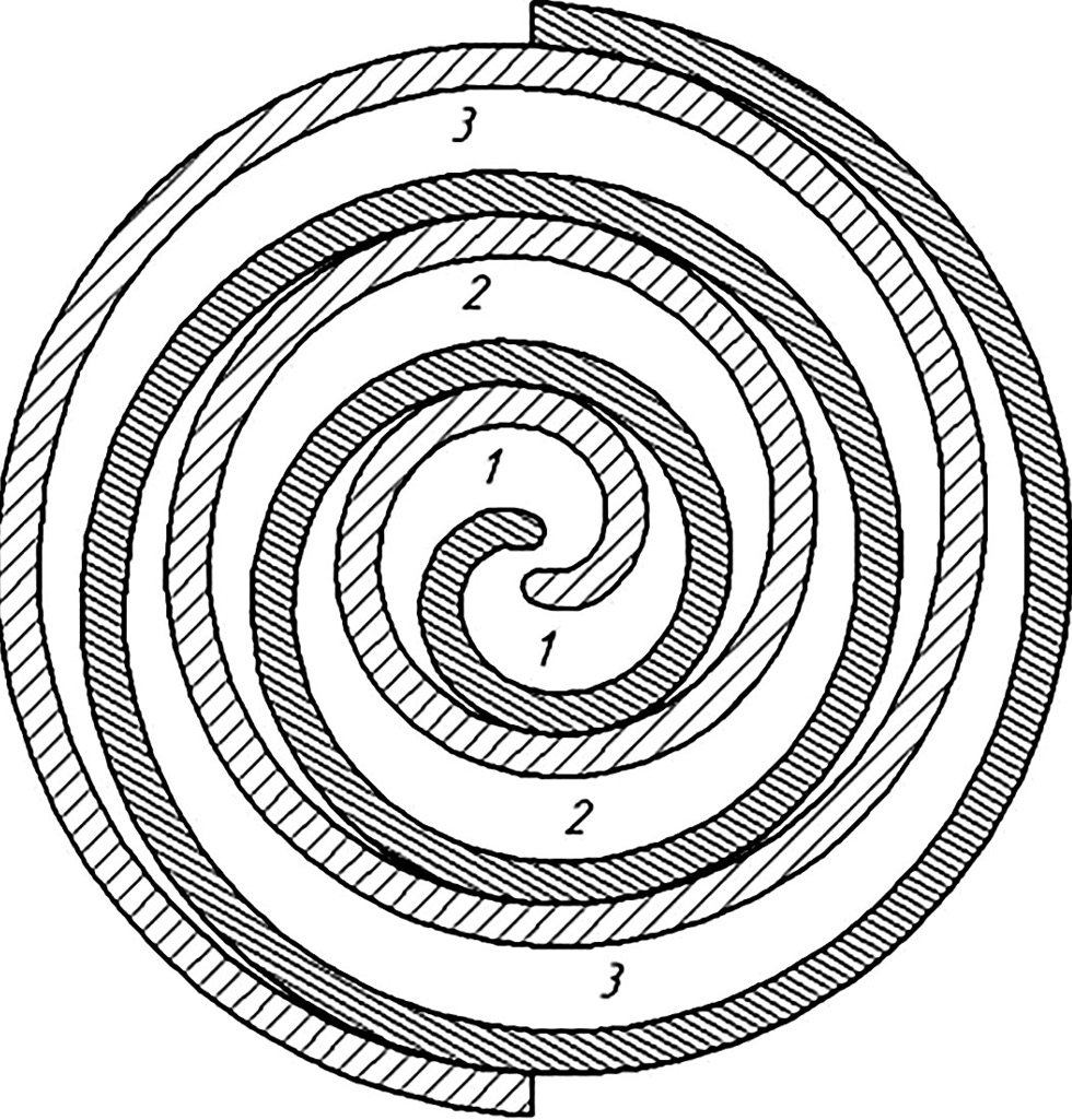 Проекция поверхностей спиралей компрессора на горизонтальную плоскость представляют собой спирали Архимеда.
