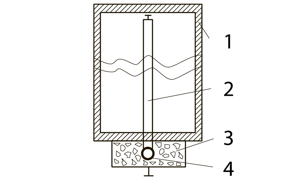 Рис. 1 Тепловая труба Гоглера (1 — холодильный агрегат, 2 — тепловая труба, 3 — куски льда, 4 — конденсатор).