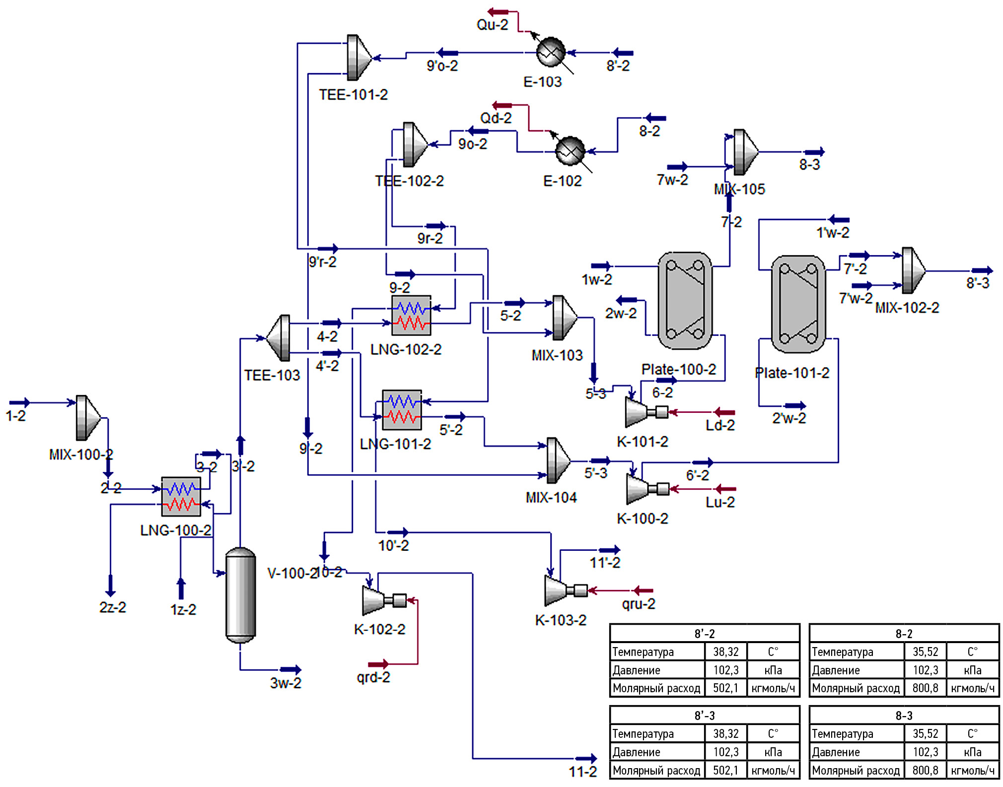 Рис. 4. Схема зимнего режима в среде Aspen Hysys.