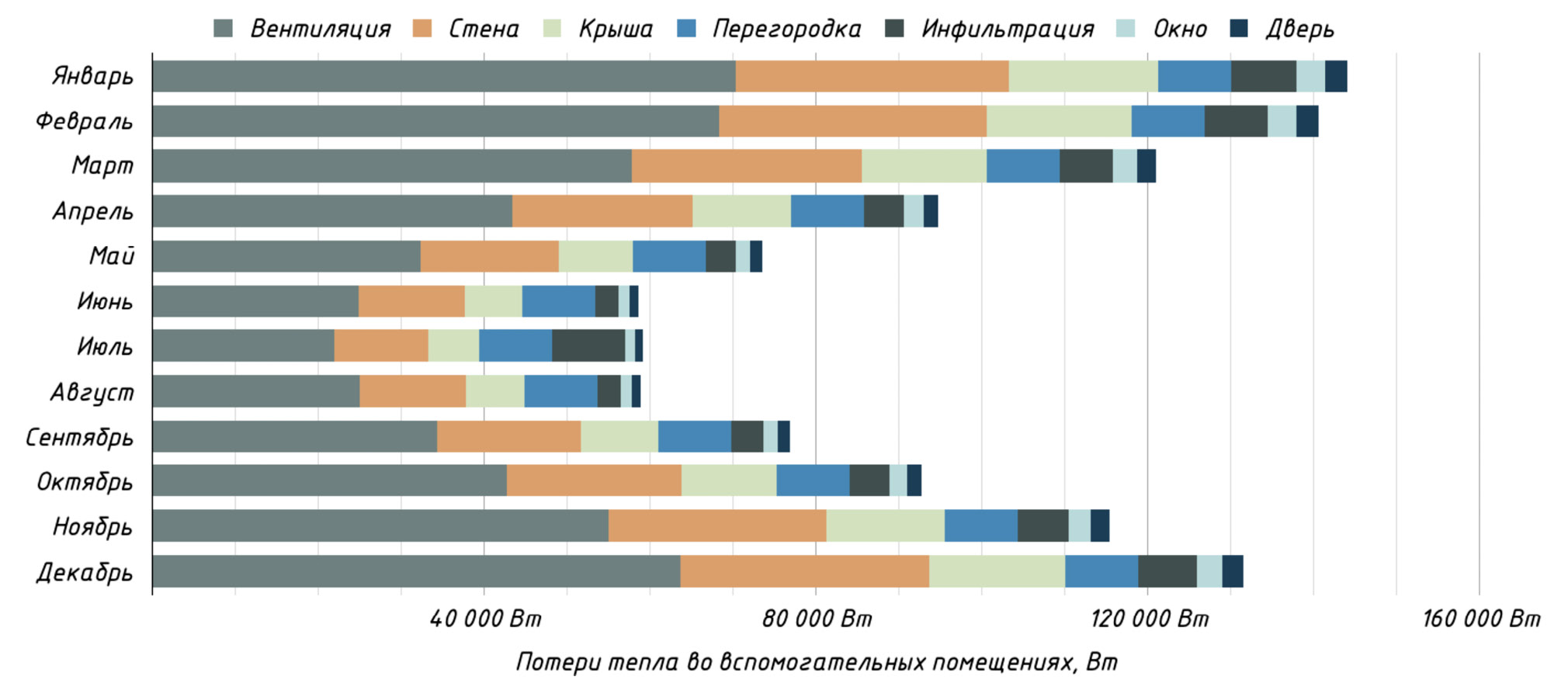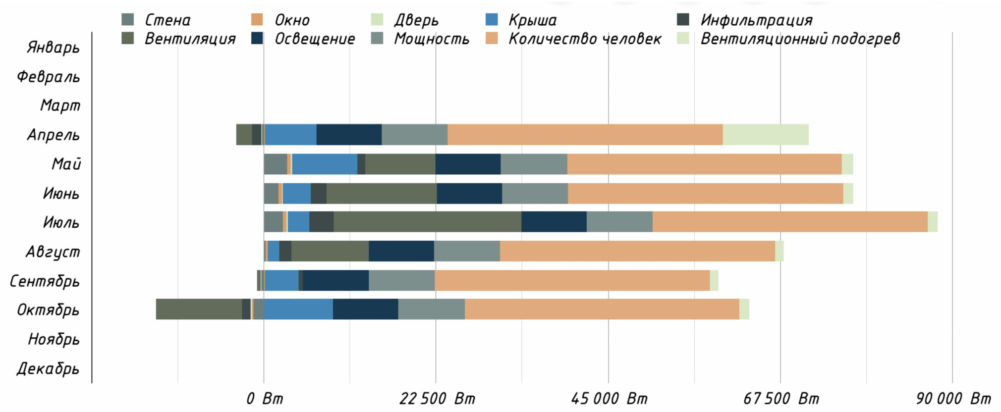 По результатам ручного расчета максимальные теплопотери здания составили 112 кВт против 143 кВт из пакета Autodesk Revit, а теплопритоки 35 кВт против 87 кВт, соответственно.