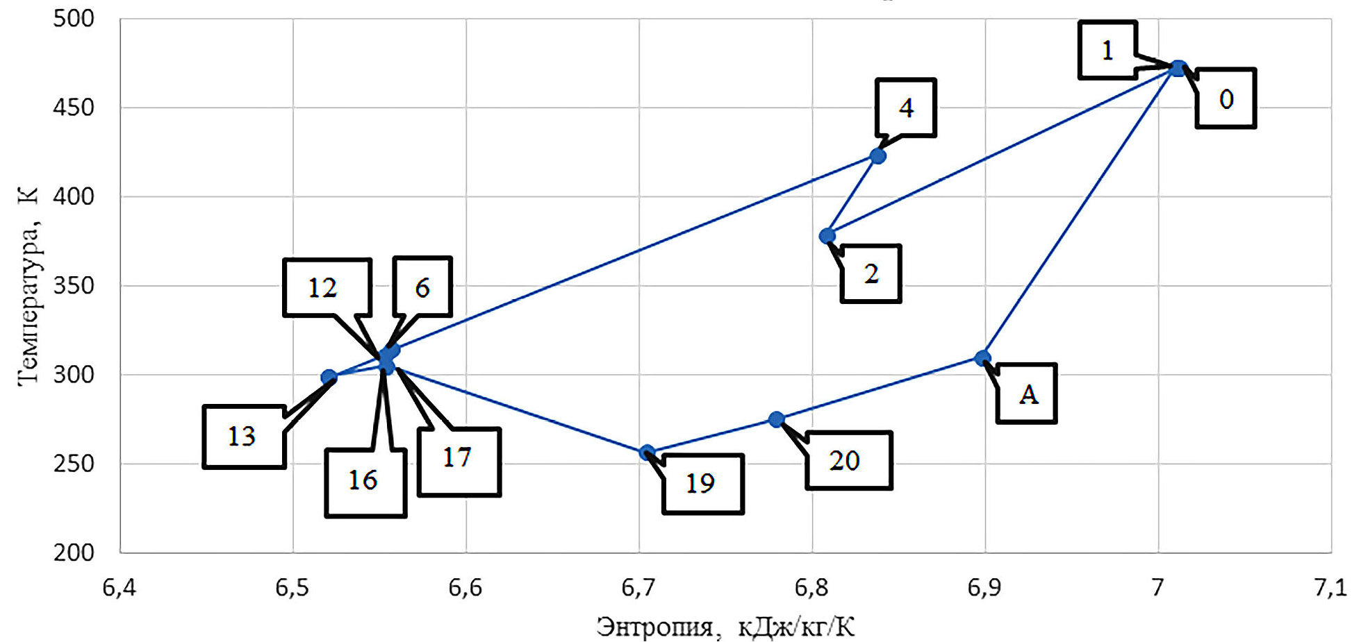 Рис. 3. Рабочий цикл в T-S диаграмме.