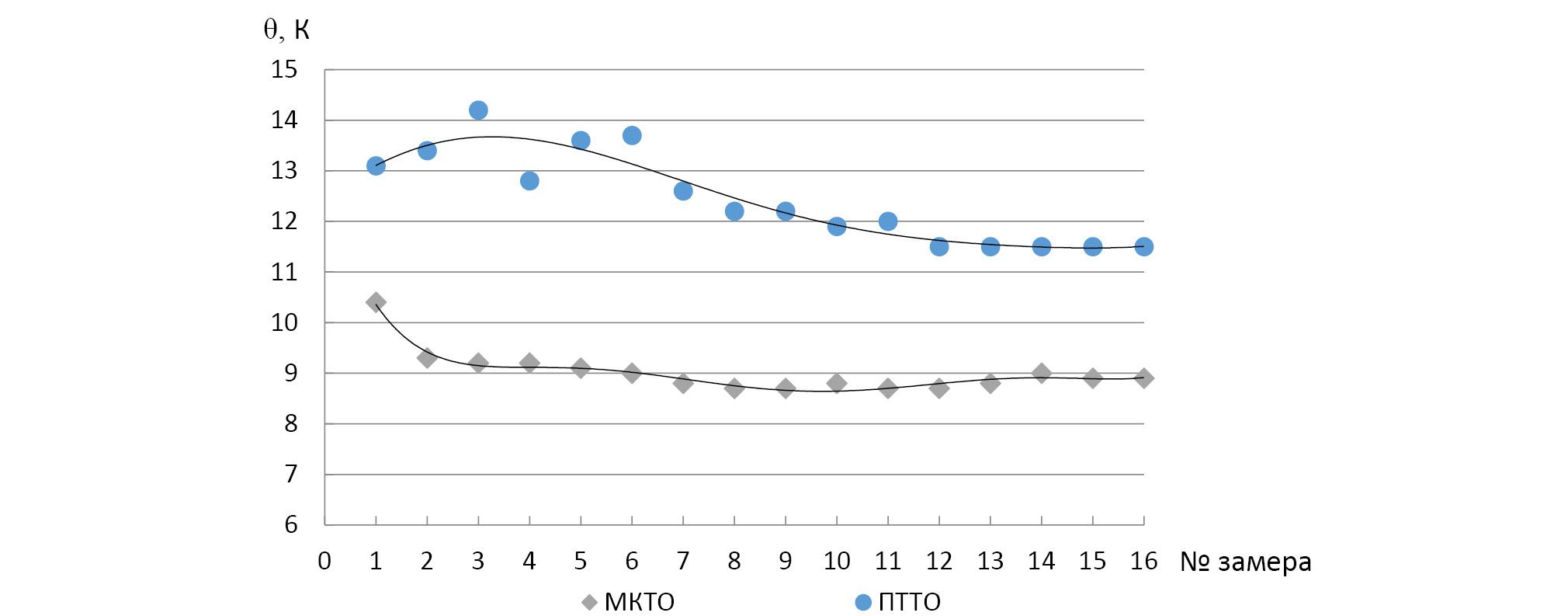 Рис. 2. Градиент температур на МКТО и ПТТО.