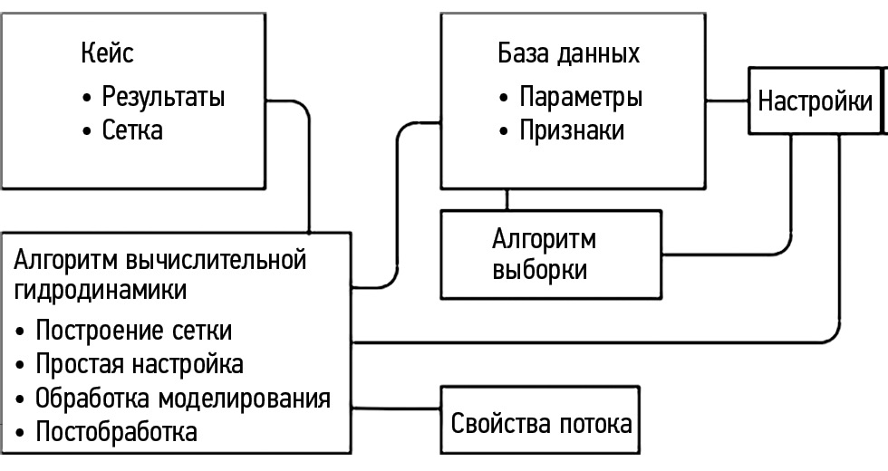 Для удобства использования база данных организована в виде сценариев. Сценарий содержит набор результатов, сеток, настроек постобработки и алгоритмов. Настройки могут быть изменены для каждой конструкции эжектора в соответствии с требованиями пользователя, например, изменены настройки вычислительной гидродинамики, настройки сетки и настройки алгоритма выборки.